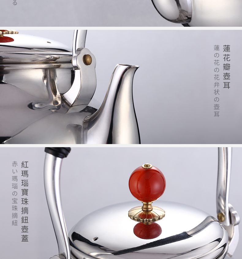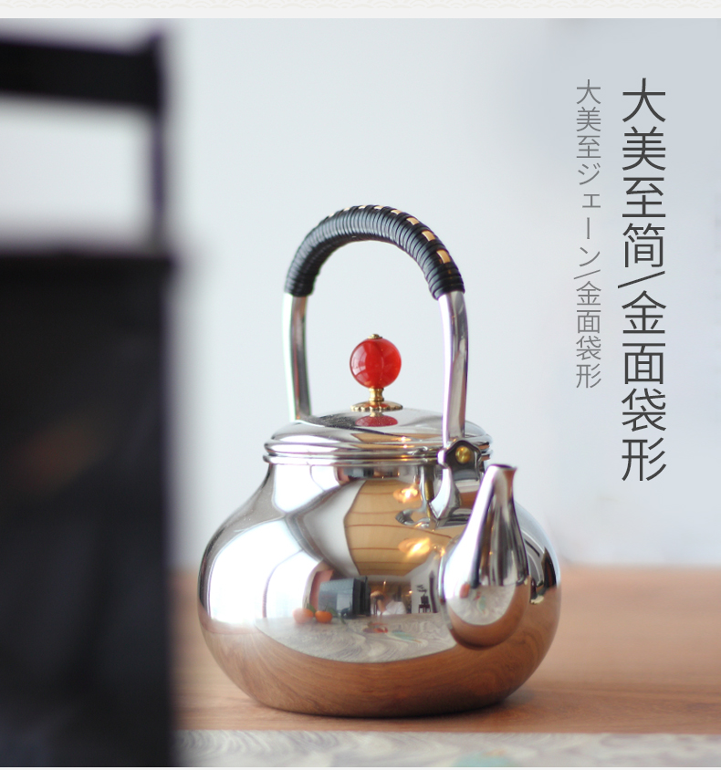 莺歌烧光面梨形烧水壶不锈钢壶煮水壶提梁壶家用烧水壶茶具茶道泡茶