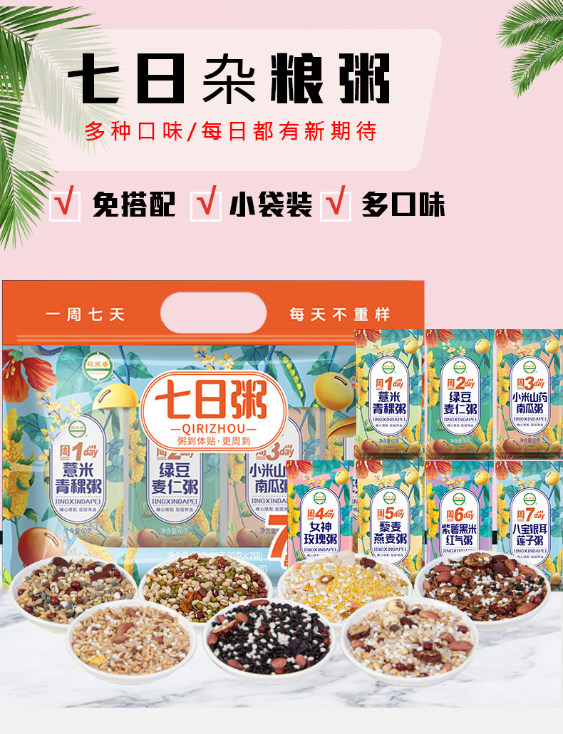 【多种口味❗️每日都有新期待🔥七日杂粮粥】甄选品质原料配比,32种食材精调7款杂粮粥,独立包装储存新鲜到家,杂粮真空八宝粥米腊八节原材料混合粥料L