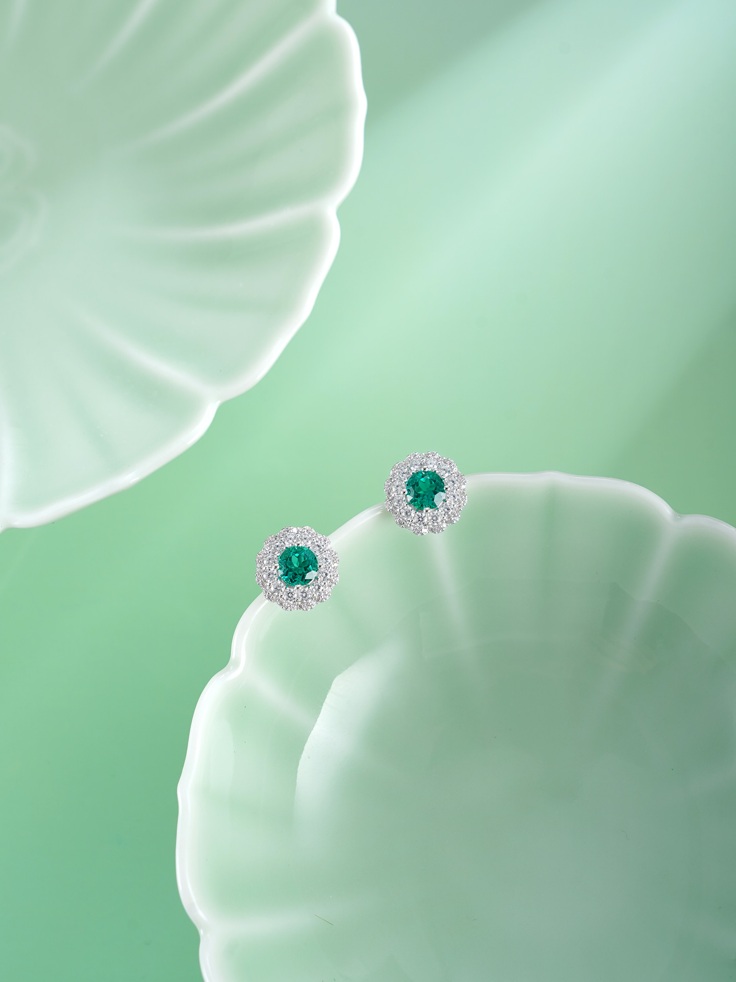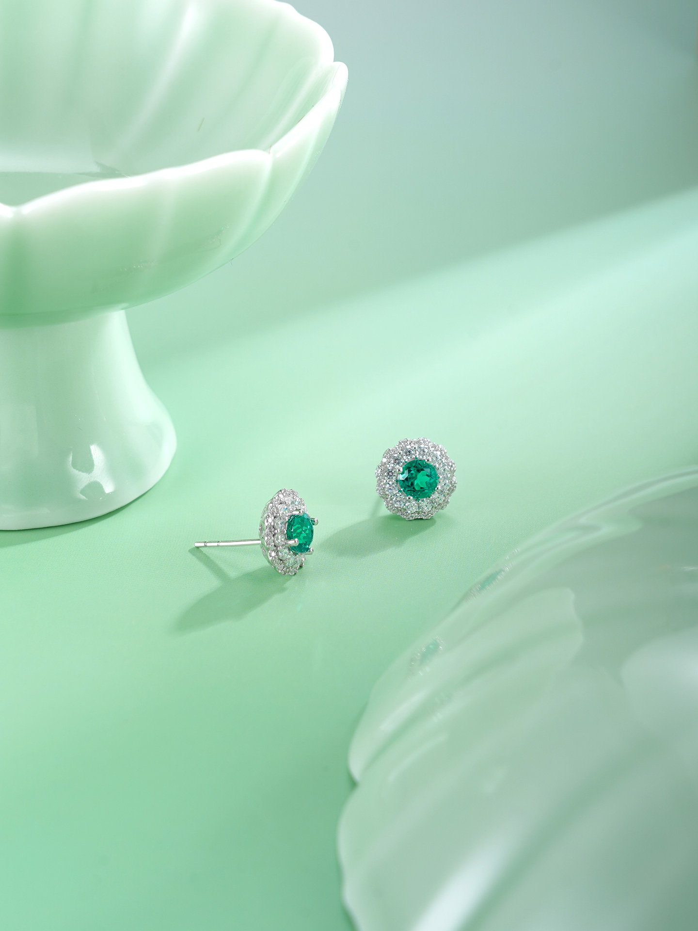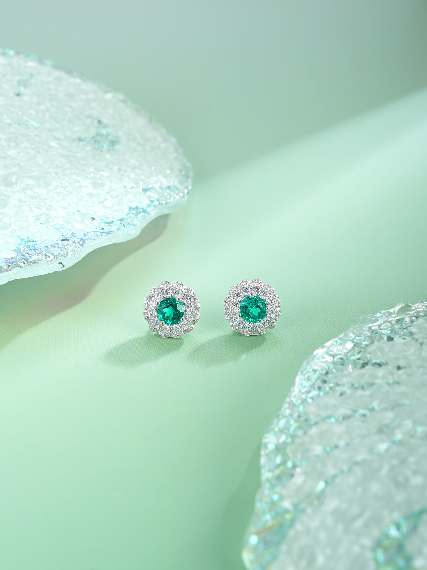 【寓意】:纯银锆石耳钉,仿照花朵初绽的自然形态,搭配绿色宝石,取名“花开一夏”,寓意定格美好,酝酿精彩。