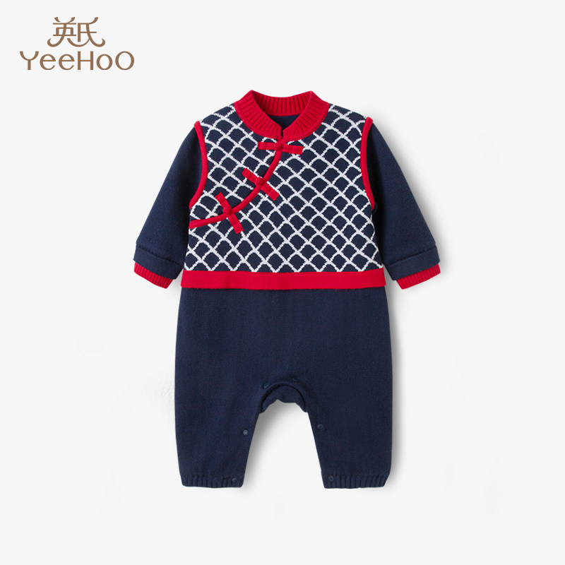英氏婴儿新毛长哈秋冬新款宝宝连体衣新年爬服哈衣YRHAJ42315A