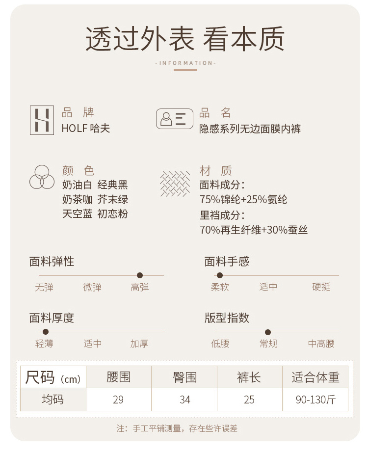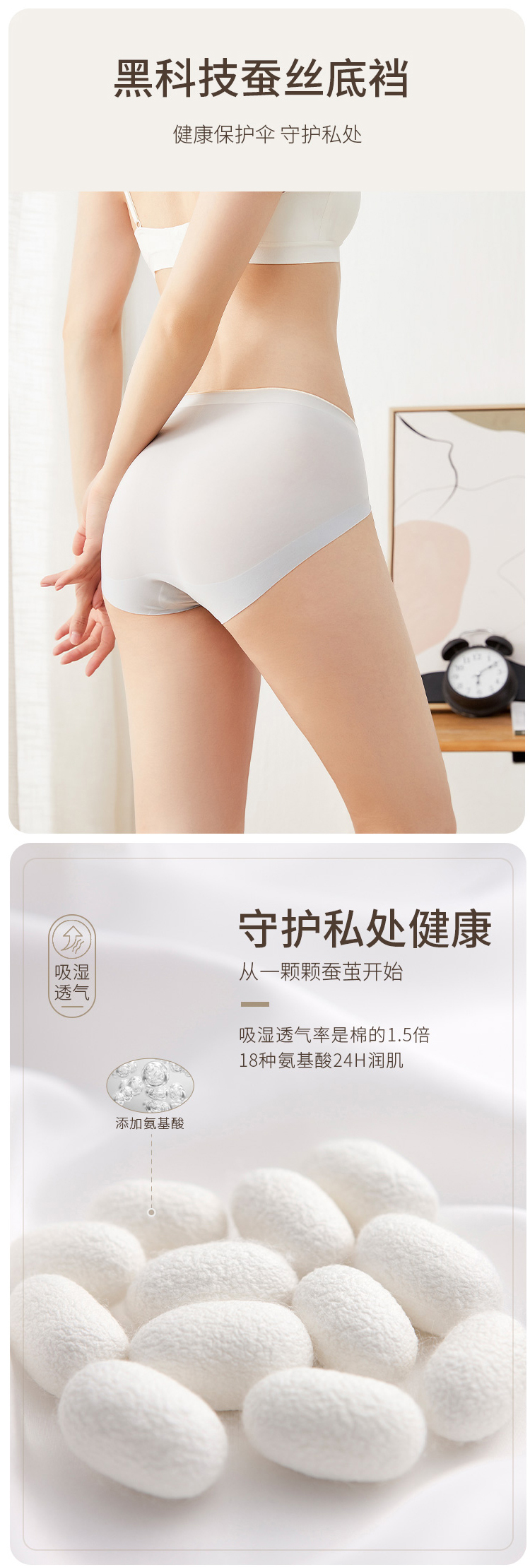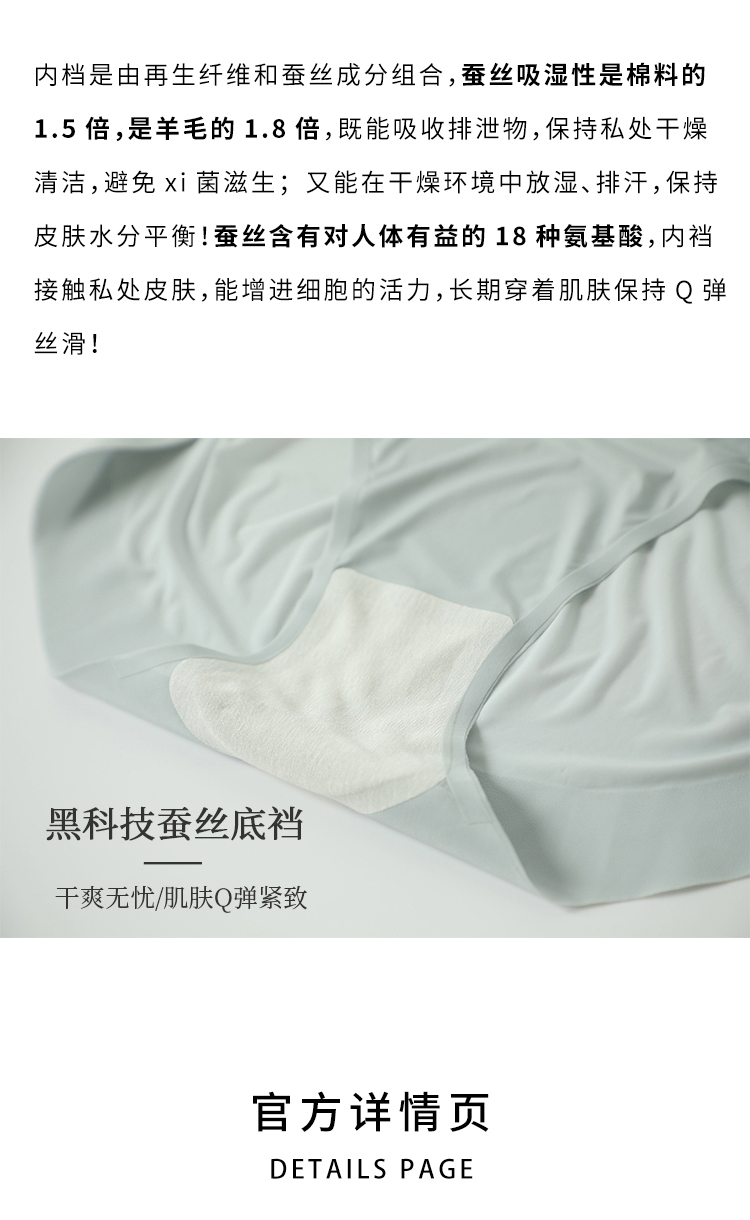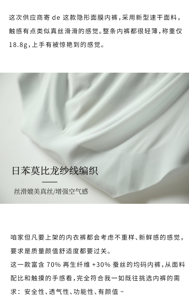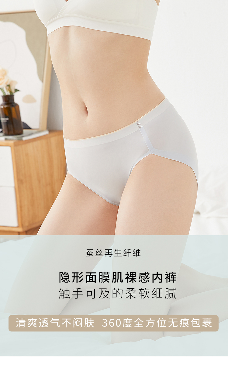 蚕丝再生纤维 隐形面膜肌裸感内裤 触手可及的柔软细腻 清爽透气不闷肤 360度全方位无痕包裹