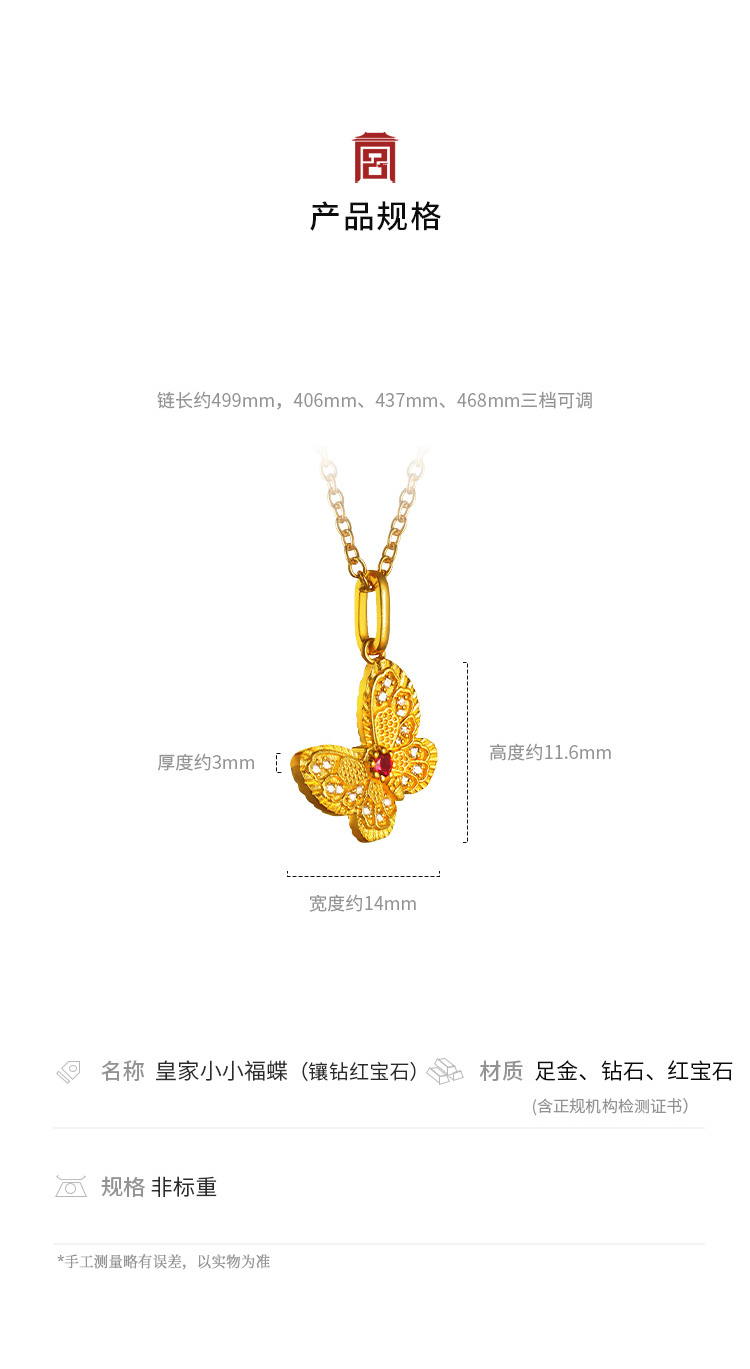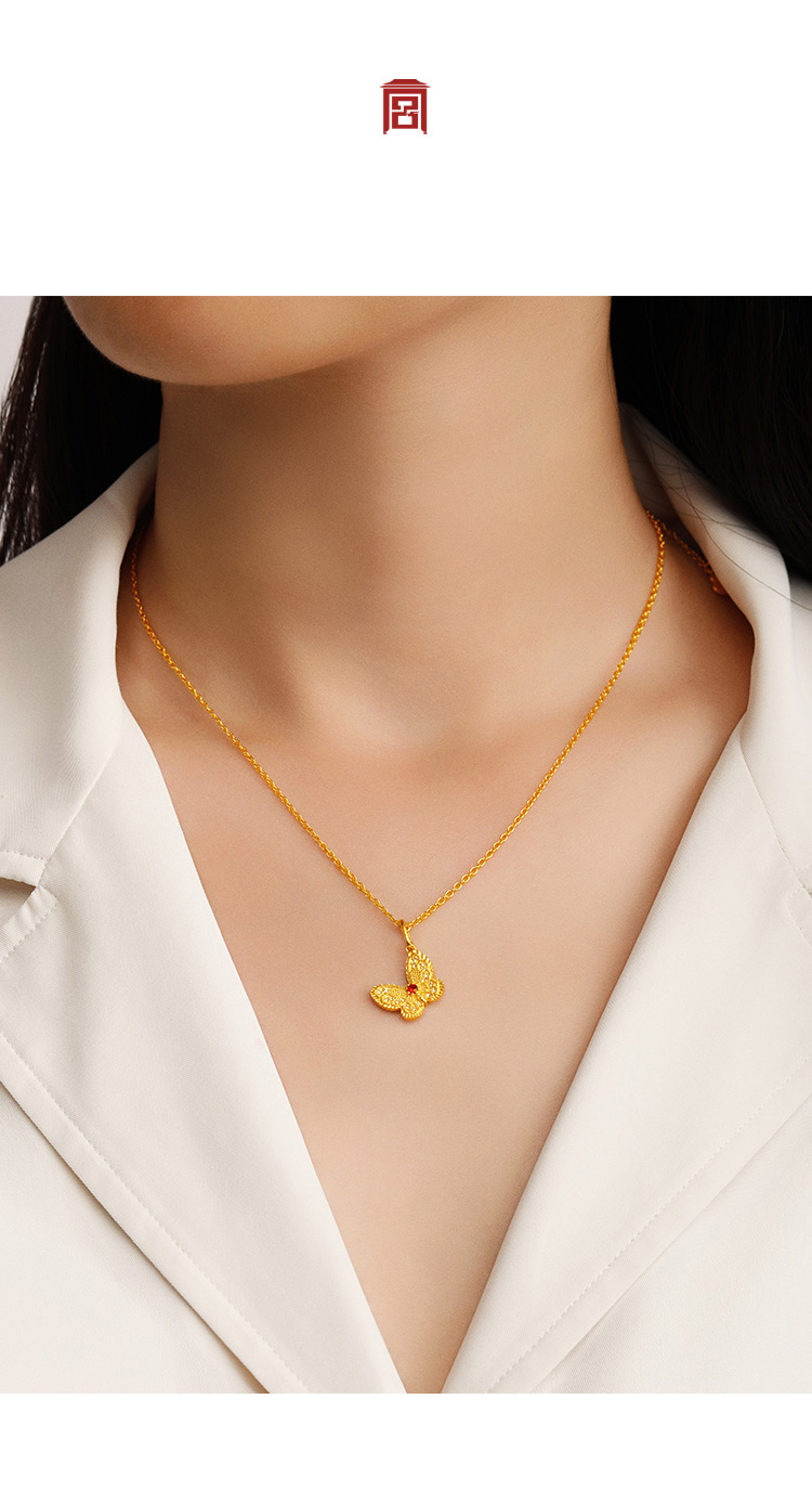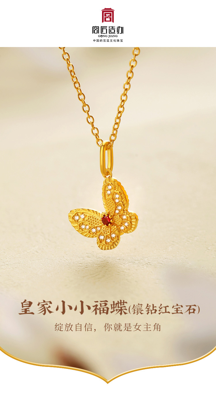 宫匠造办 皇家小小 福蝶项链 黄金镶钻红宝石