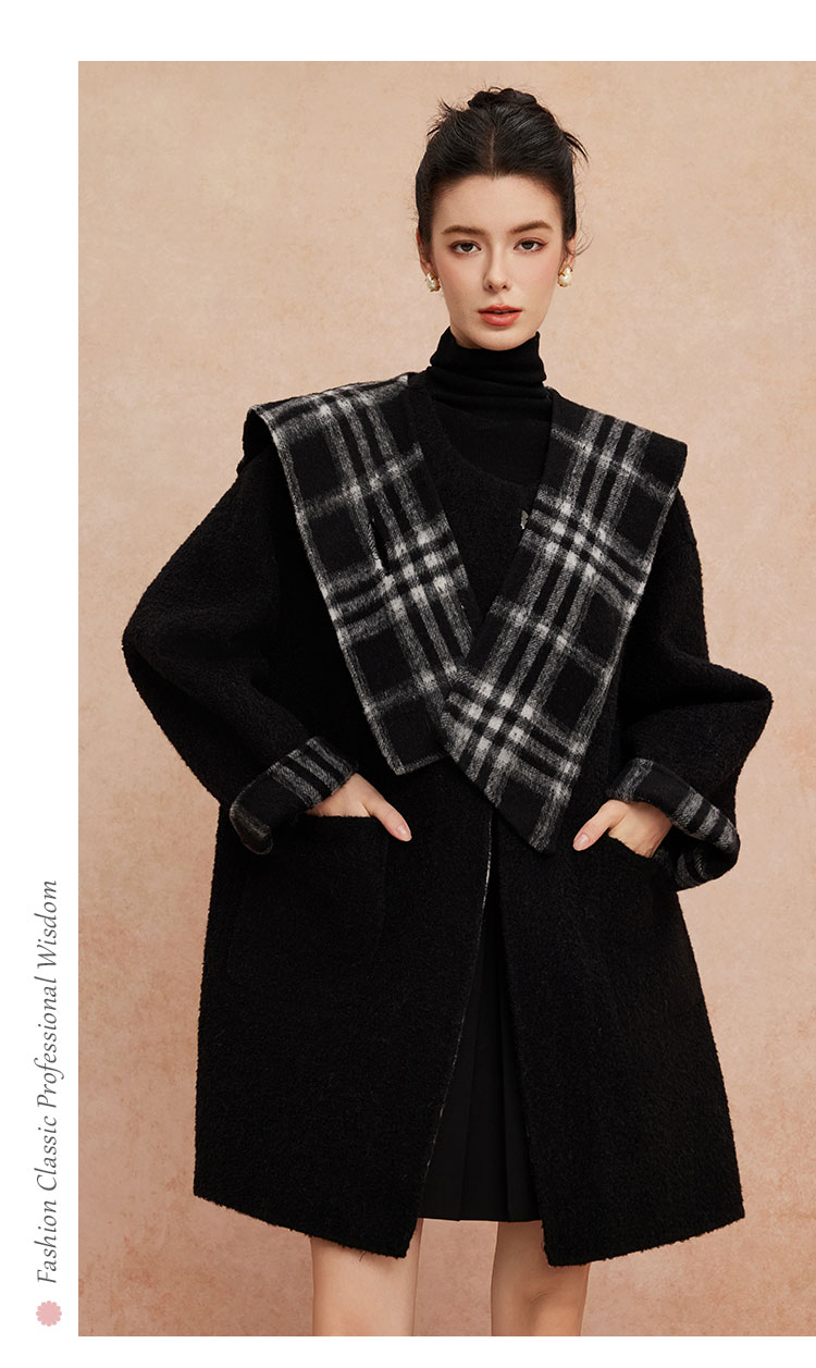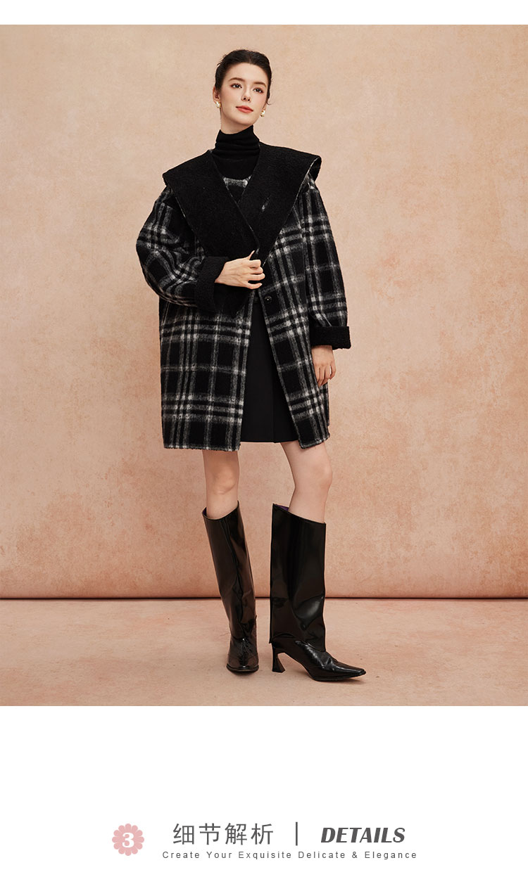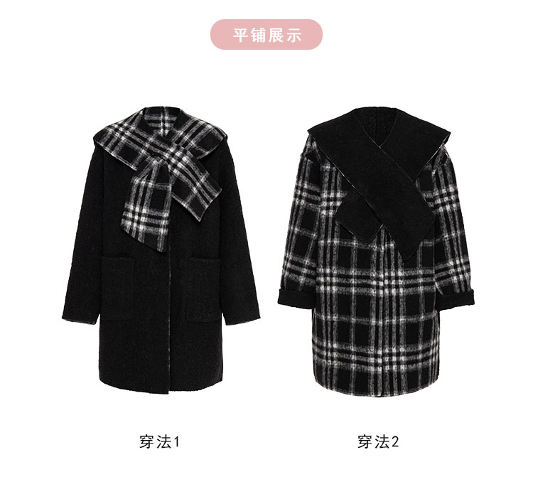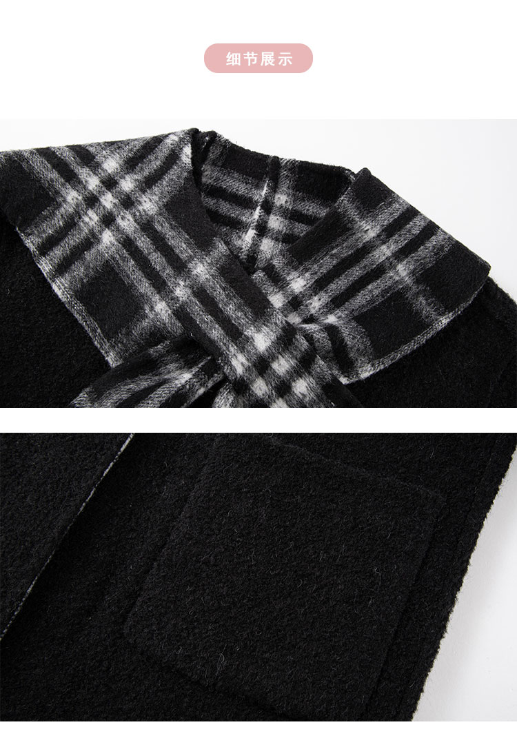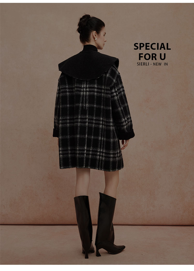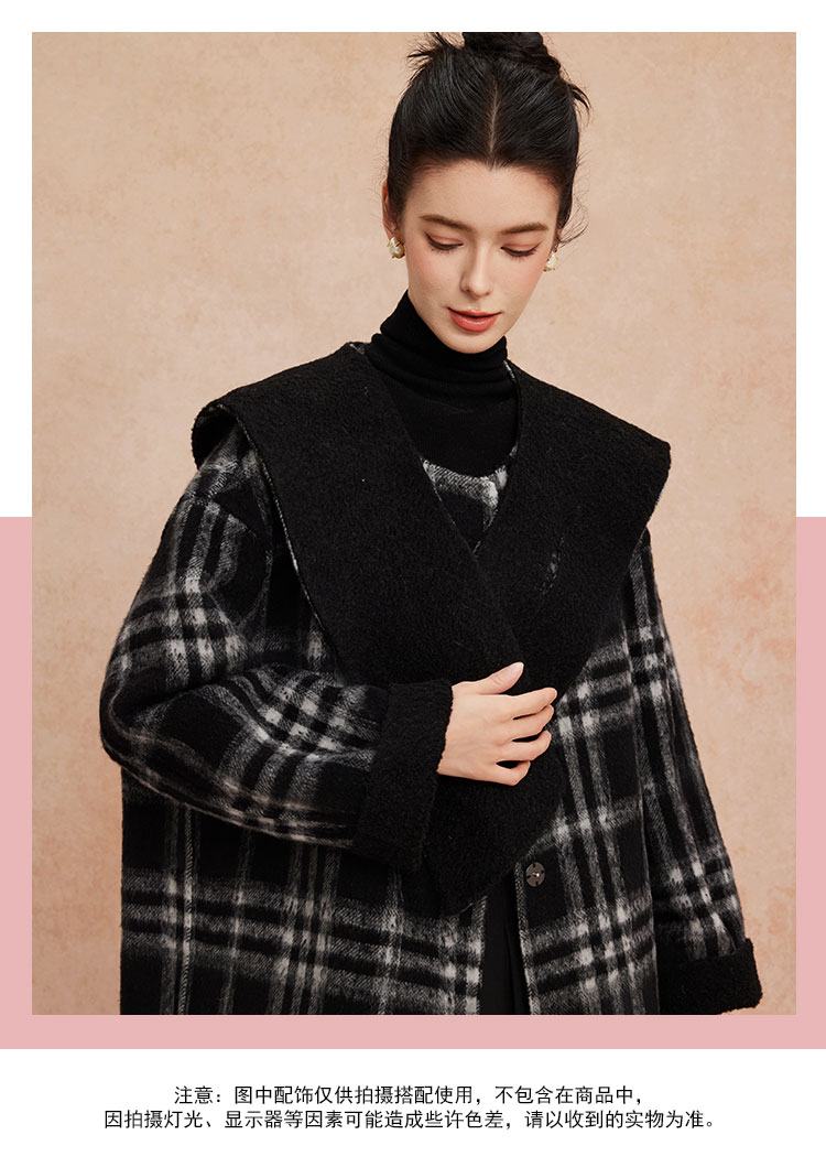 QH966斯尔丽25新款双面双色格子一衣多穿宽松减龄时尚小个子大衣