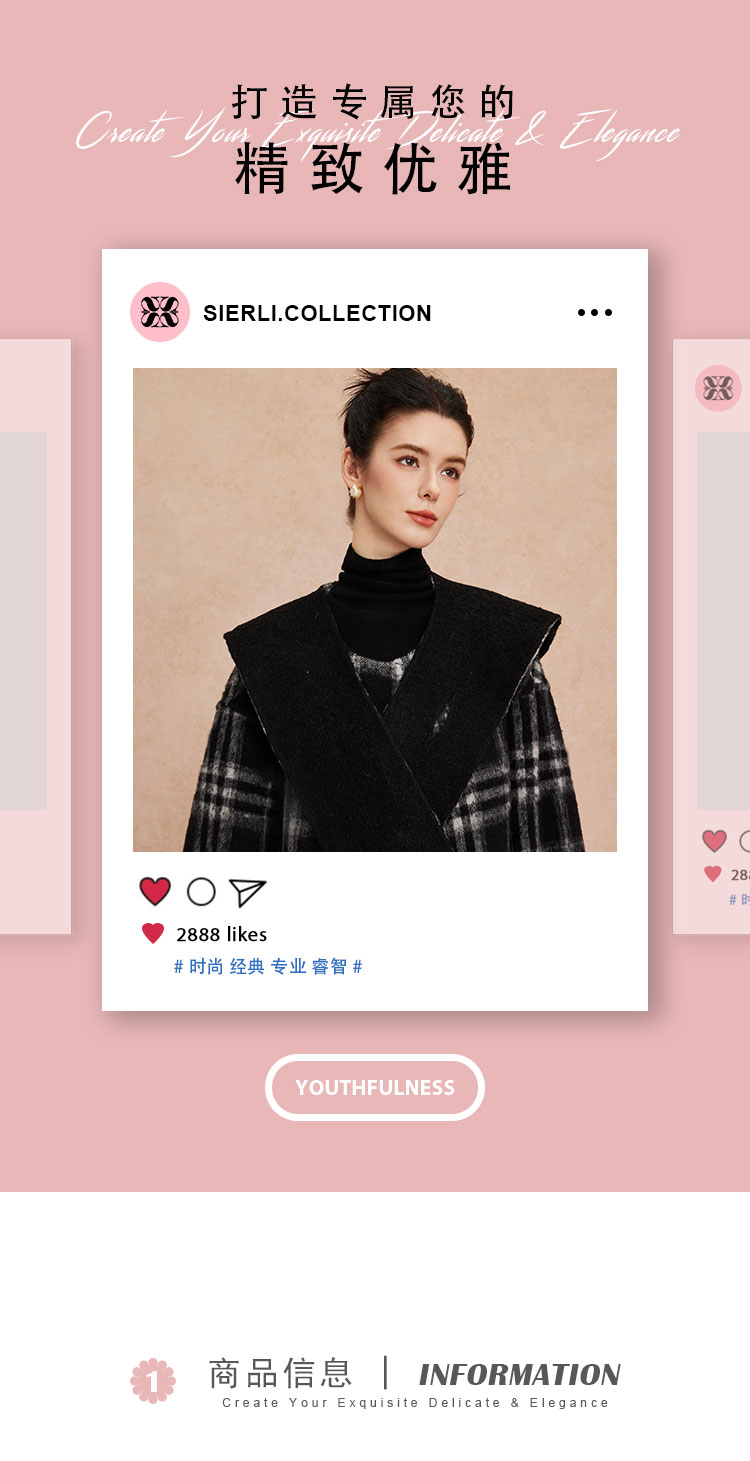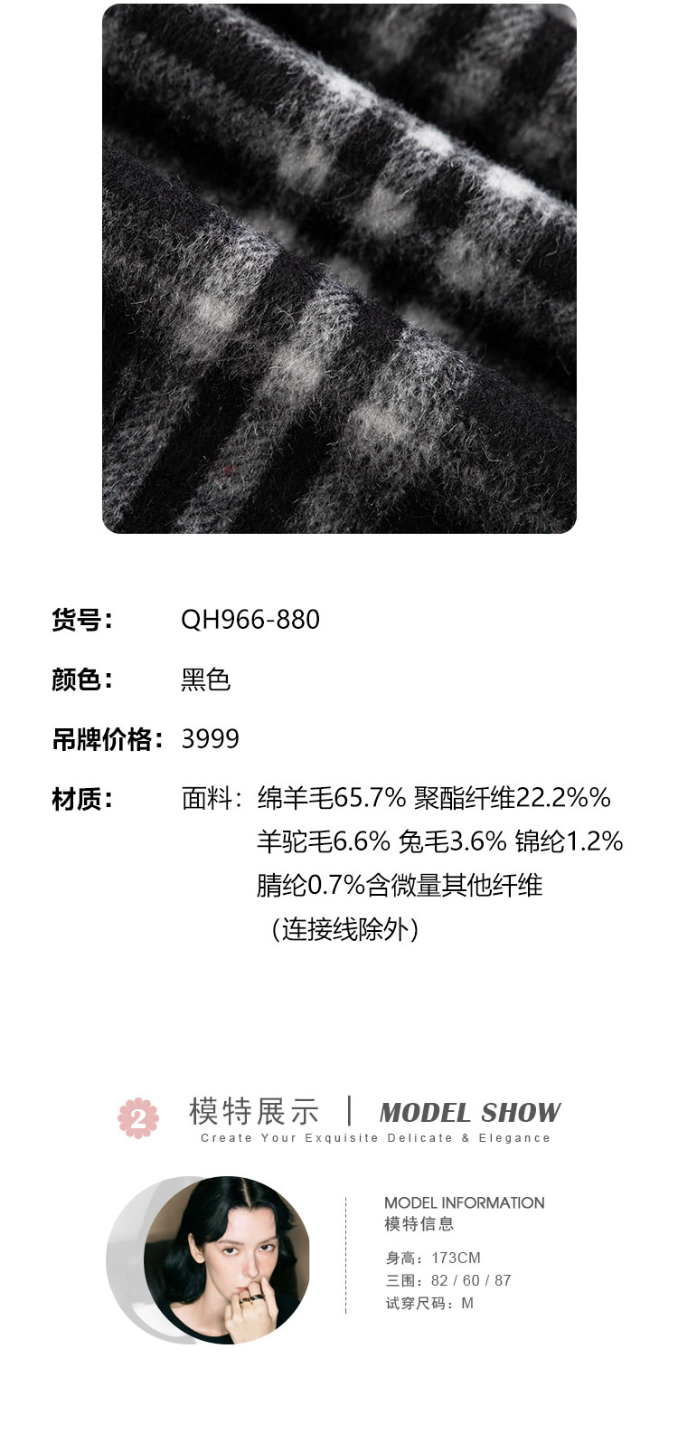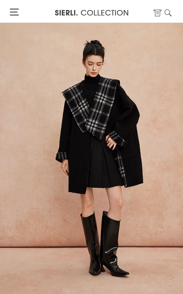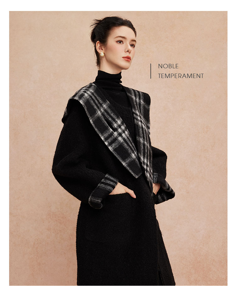 QH966斯尔丽25新款双面双色格子一衣多穿宽松减龄时尚小个子大衣