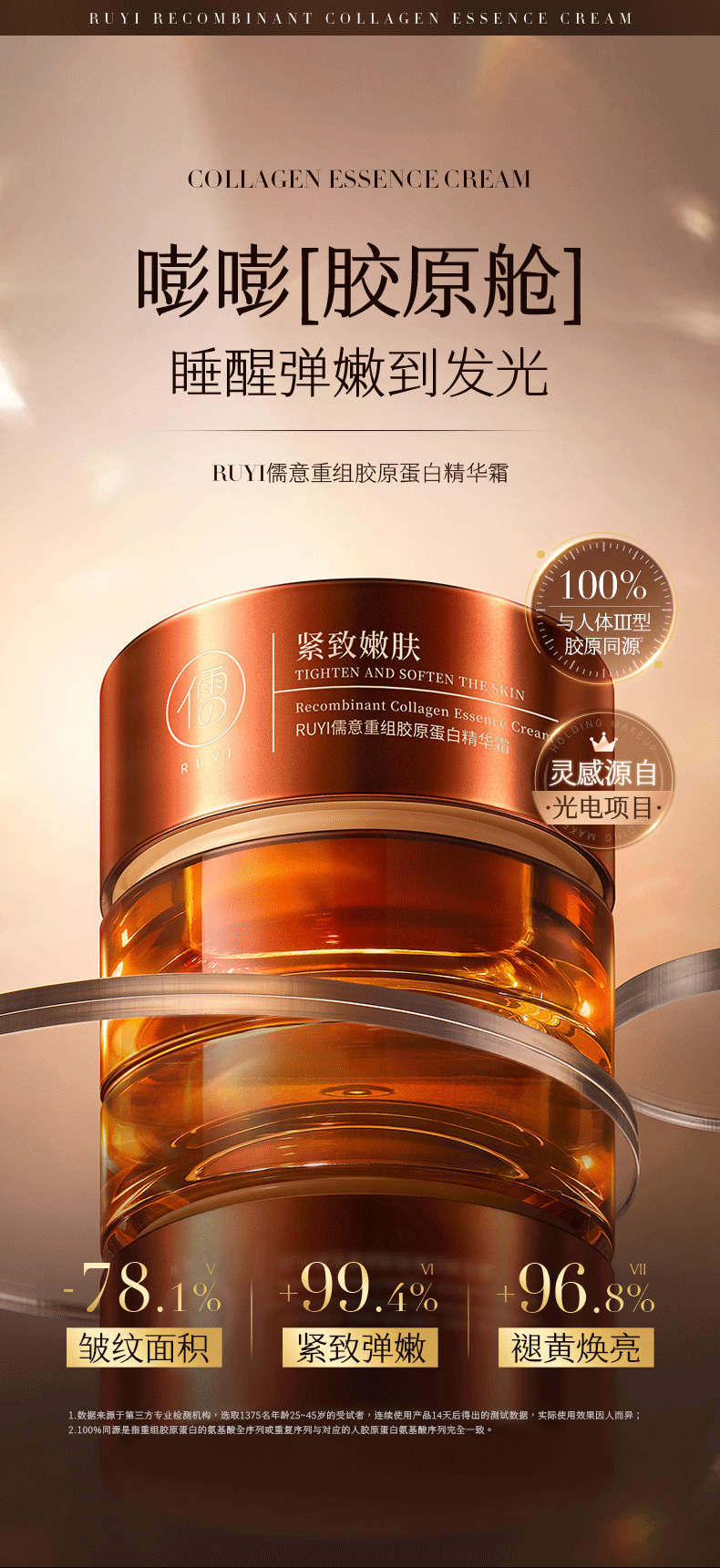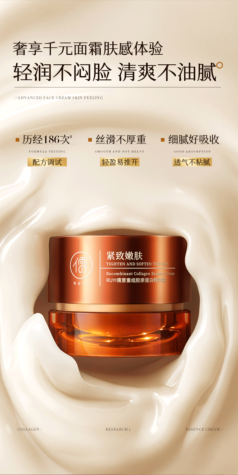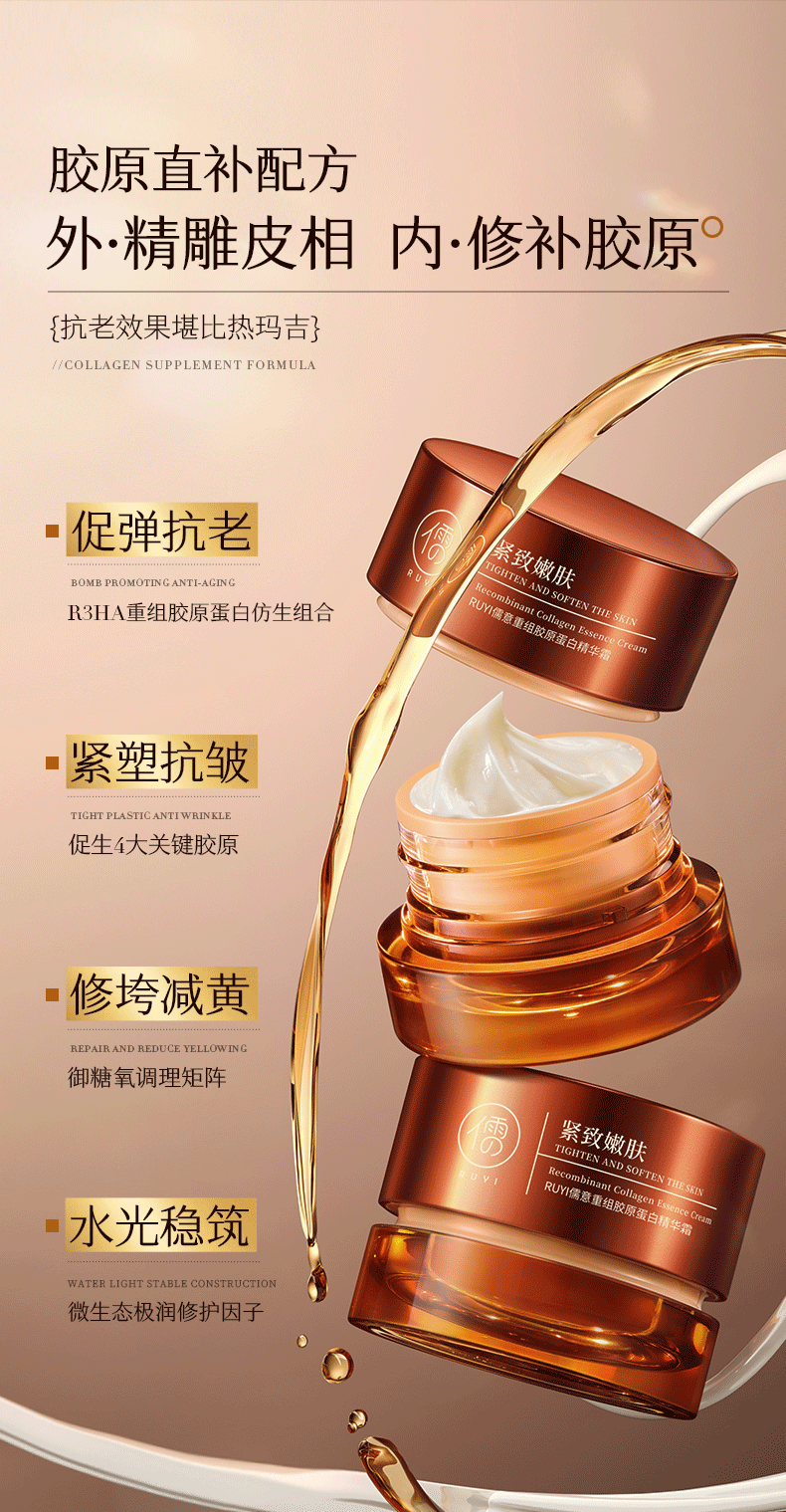 儒意重组胶原蛋白精华霜50g 重组胶原蛋白面霜紧致抗皱抗衰老b5补水保湿减黄提亮|儒意官方商城