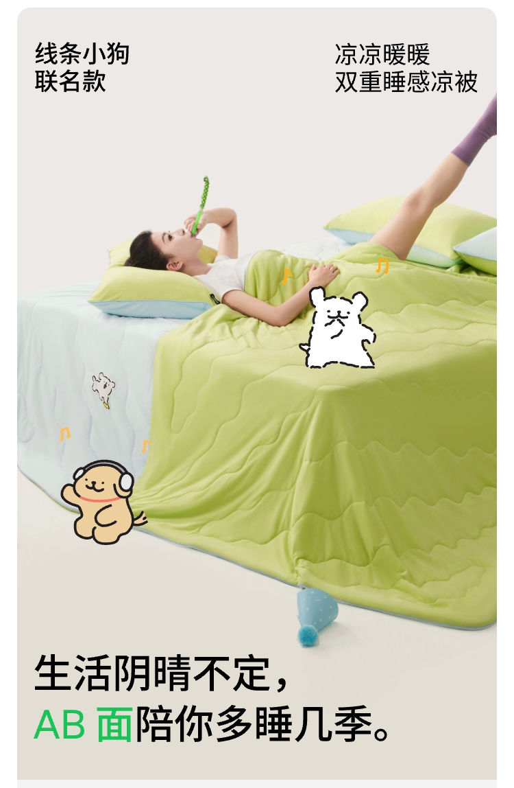 躺岛瓜瓜&线条小狗联名凉被凉凉暖暖双重睡感夏被轻薄透气空调被