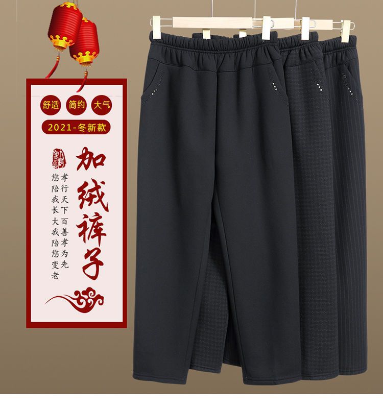 中老年人冬季加绒加厚裤子60岁以上老人裤子女高腰直筒裤奶奶裤子
