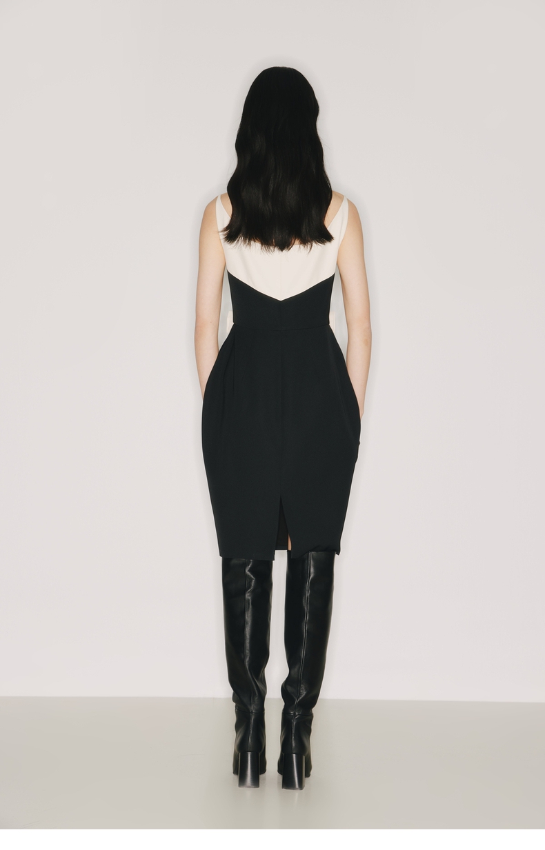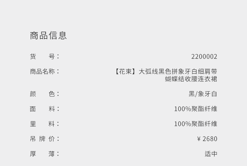 【加拉辛】大弧线黑色拼米白细肩带蝴蝶结黑色收腰连衣裙/2200002