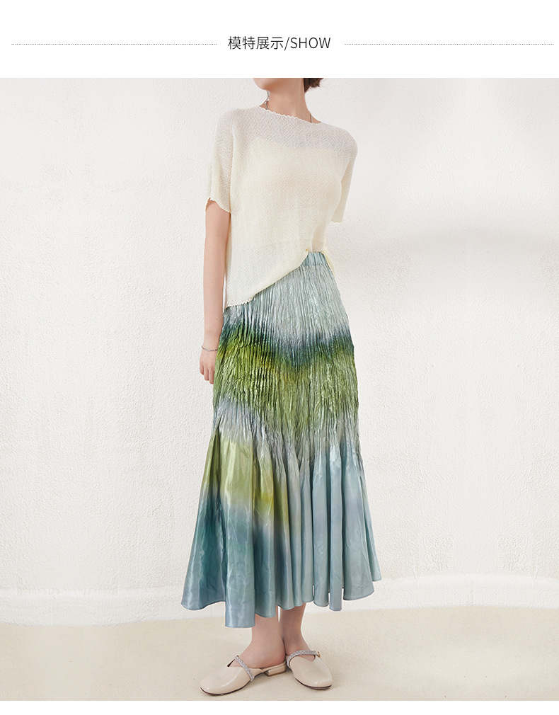 【轻奢款】岛国客供面料 褶皱渐变色半身裙