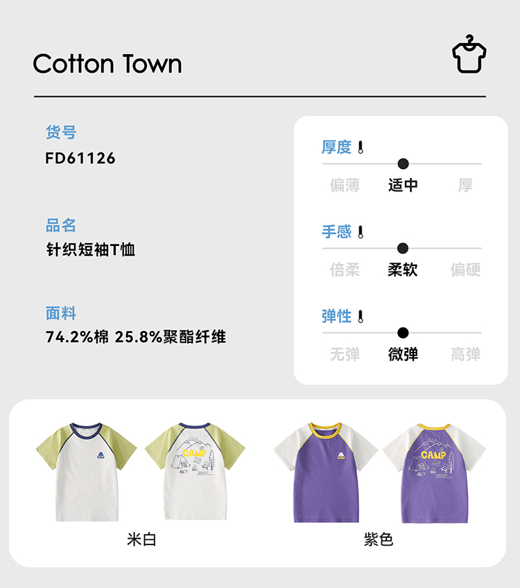 【10A抗菌】棉花堂夏款山系棉感不粘人童装弹性短袖T恤-- FD61126