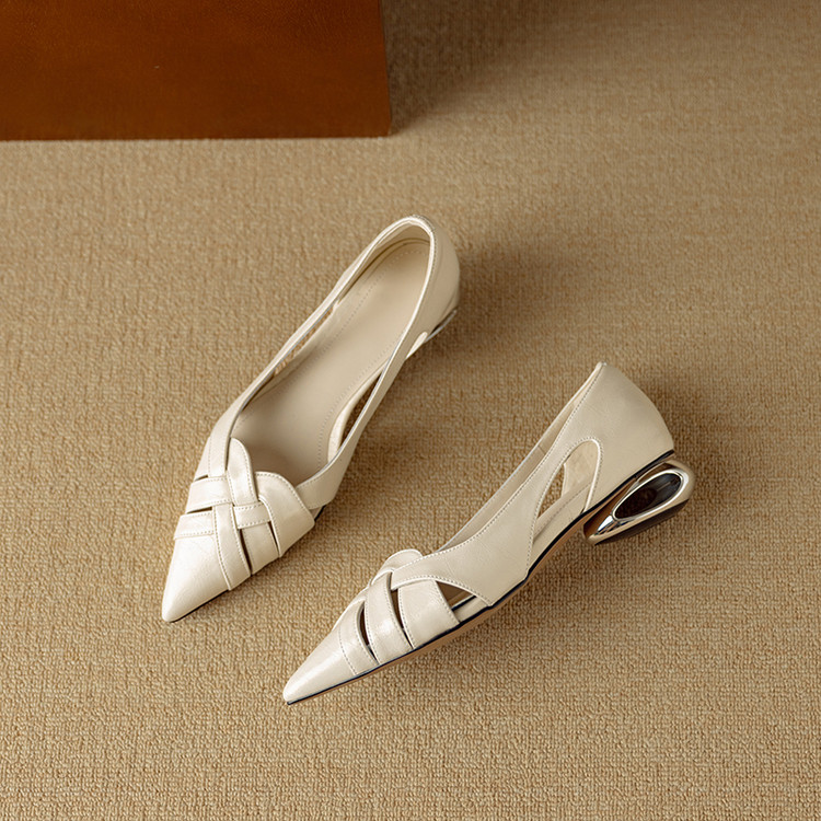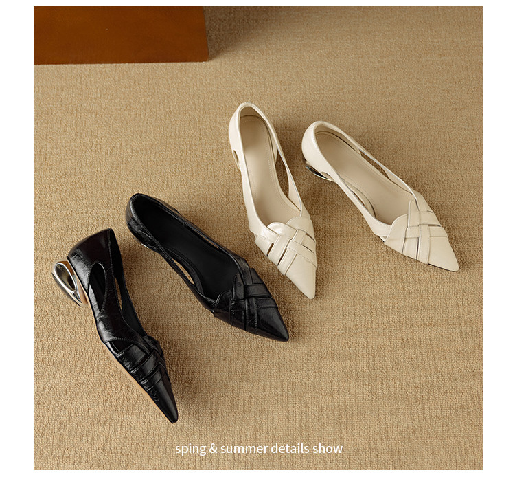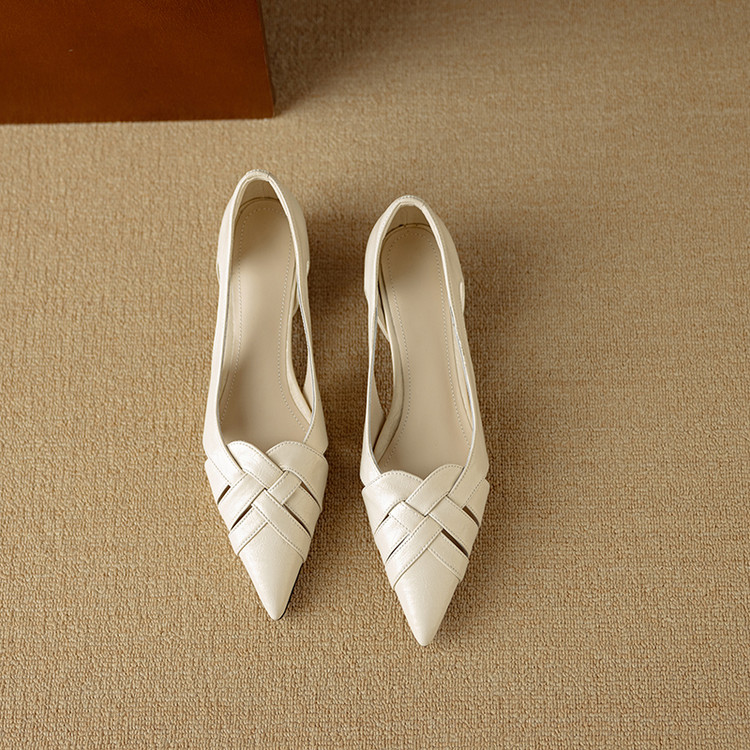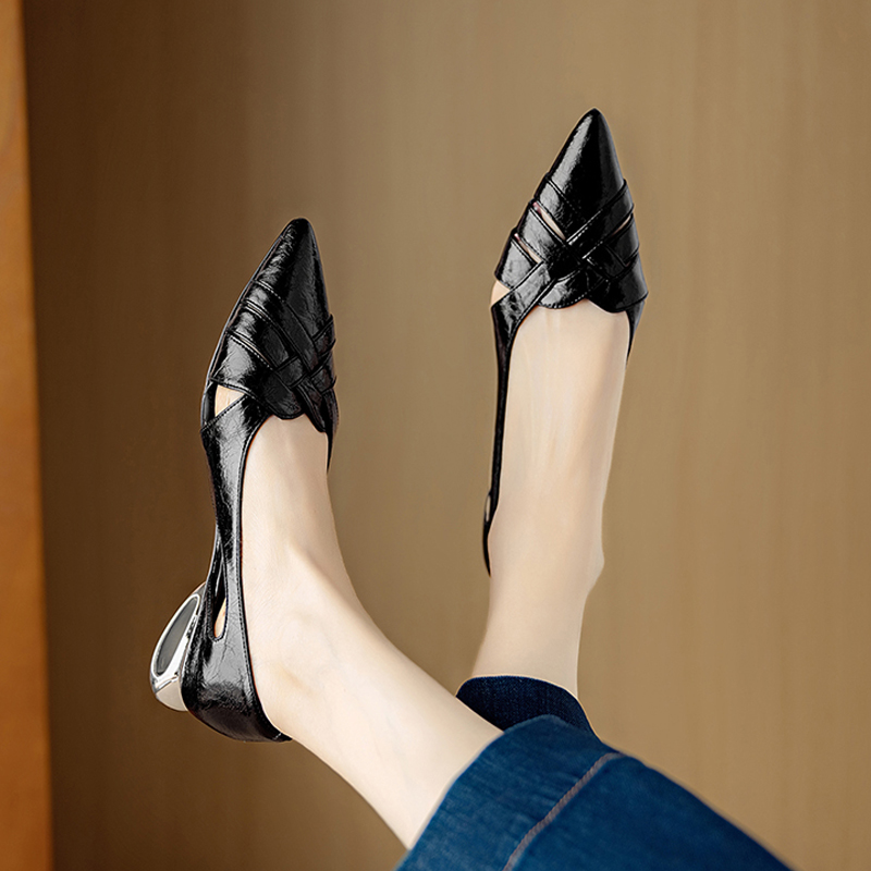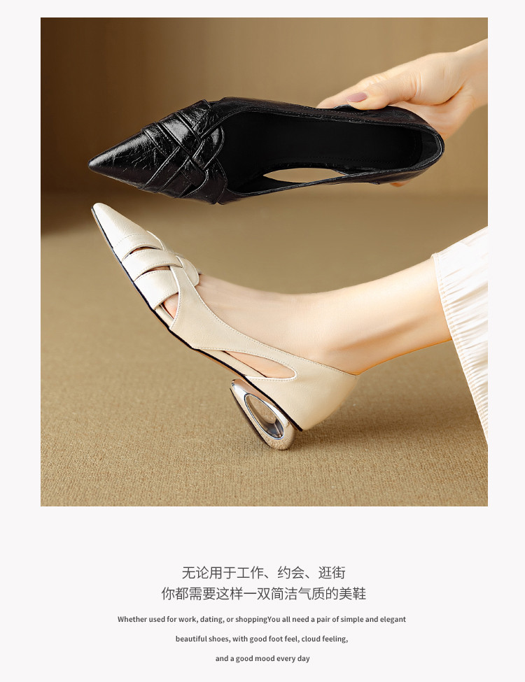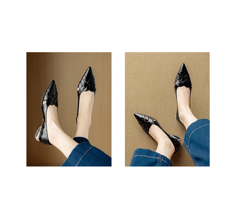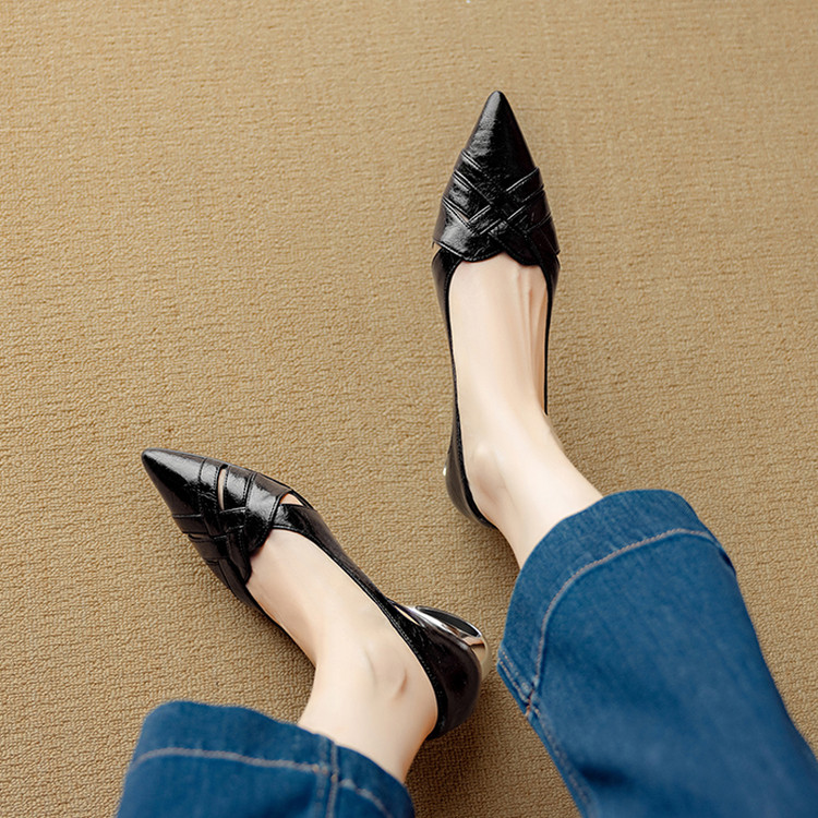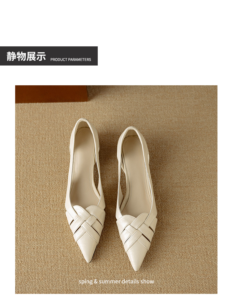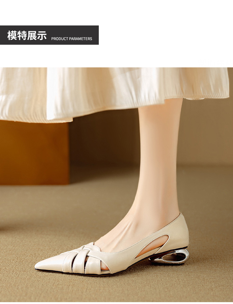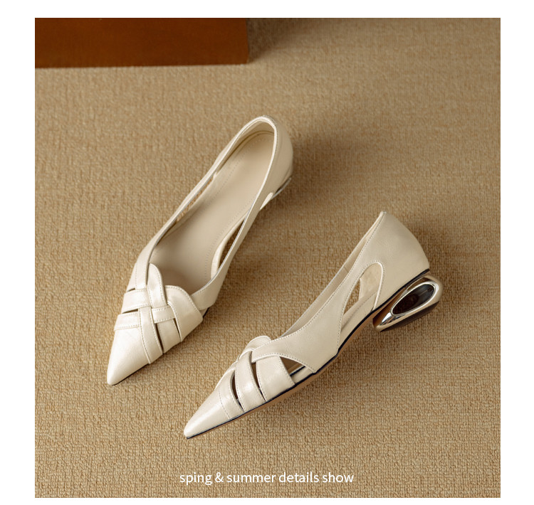 【预售5天】透气编织凉鞋女春夏气质优雅牛皮柔软尖头包头侧空单鞋DB&M6330