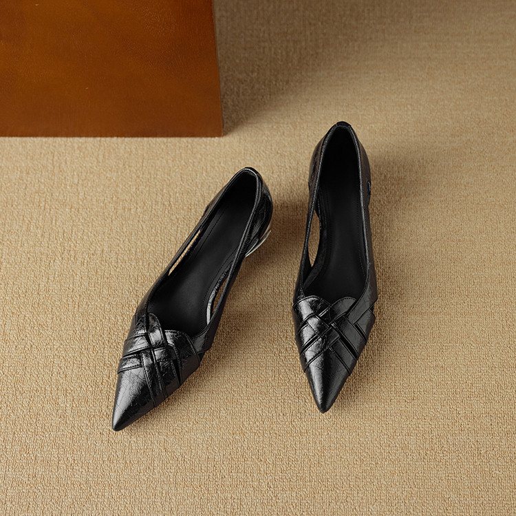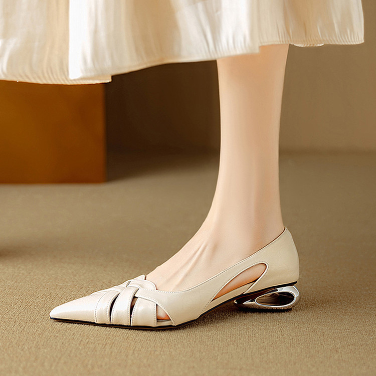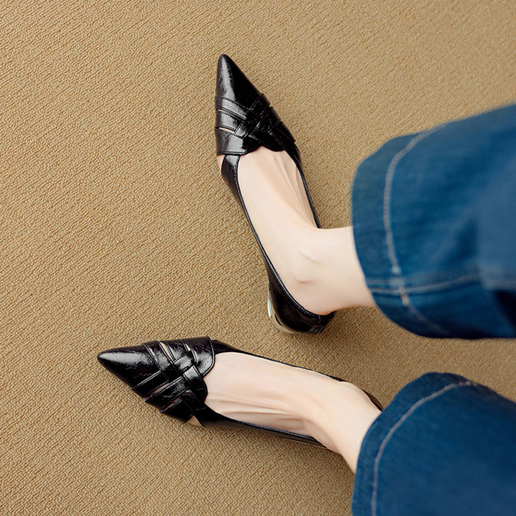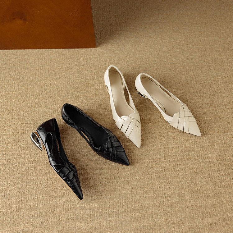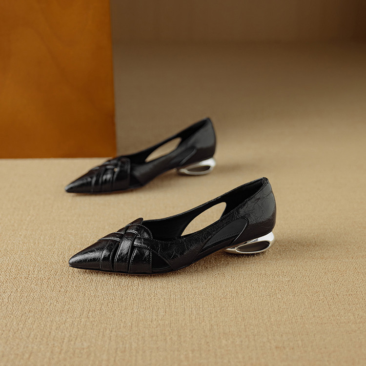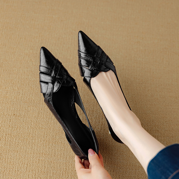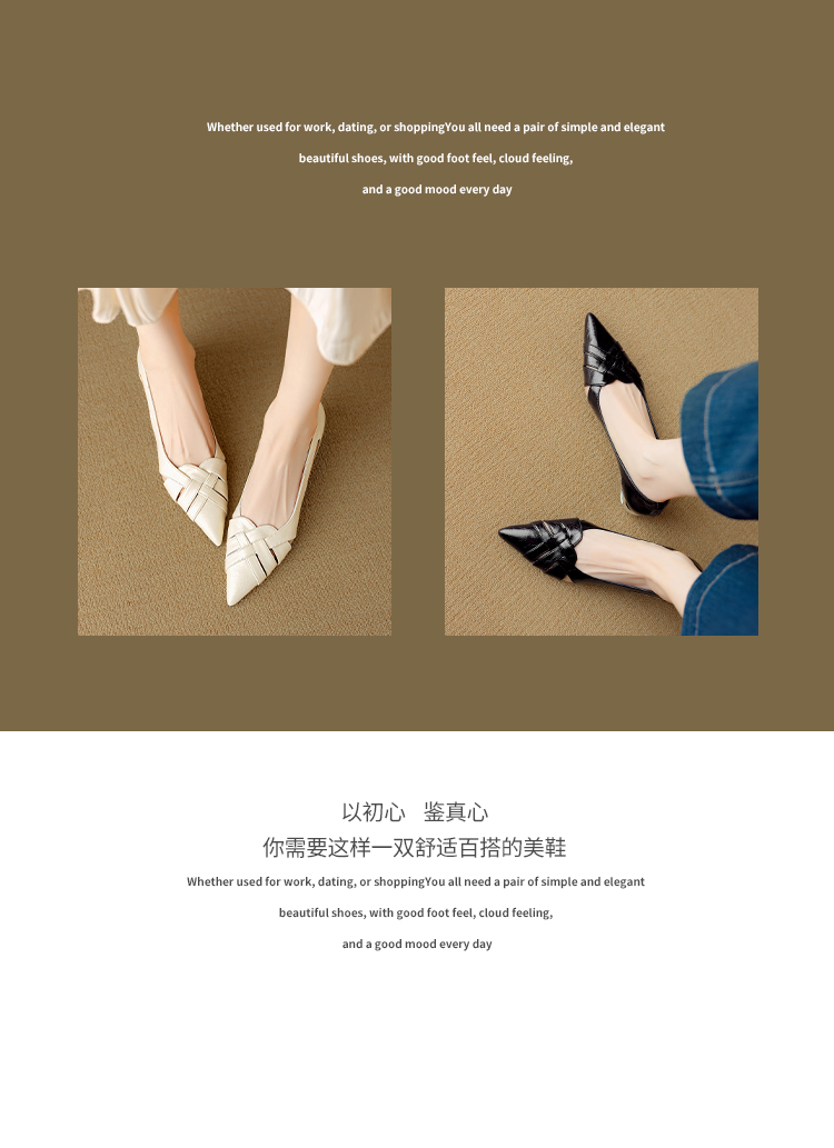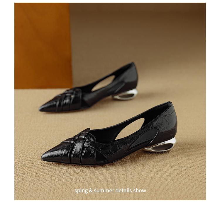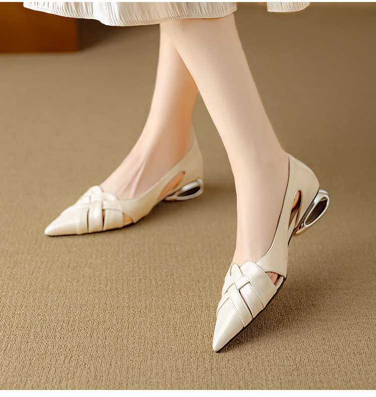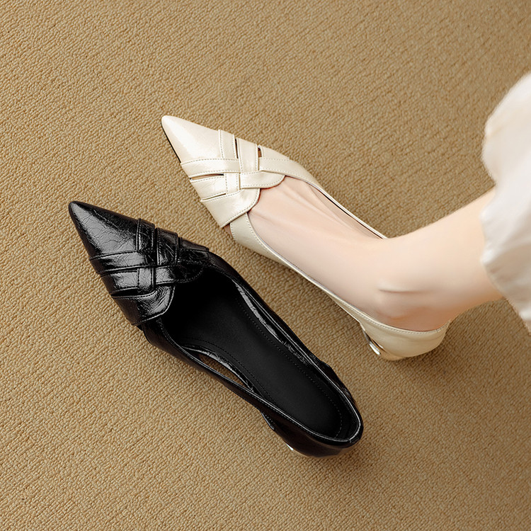 【预售5天】透气编织凉鞋女春夏气质优雅牛皮柔软尖头包头侧空单鞋DB&M6330