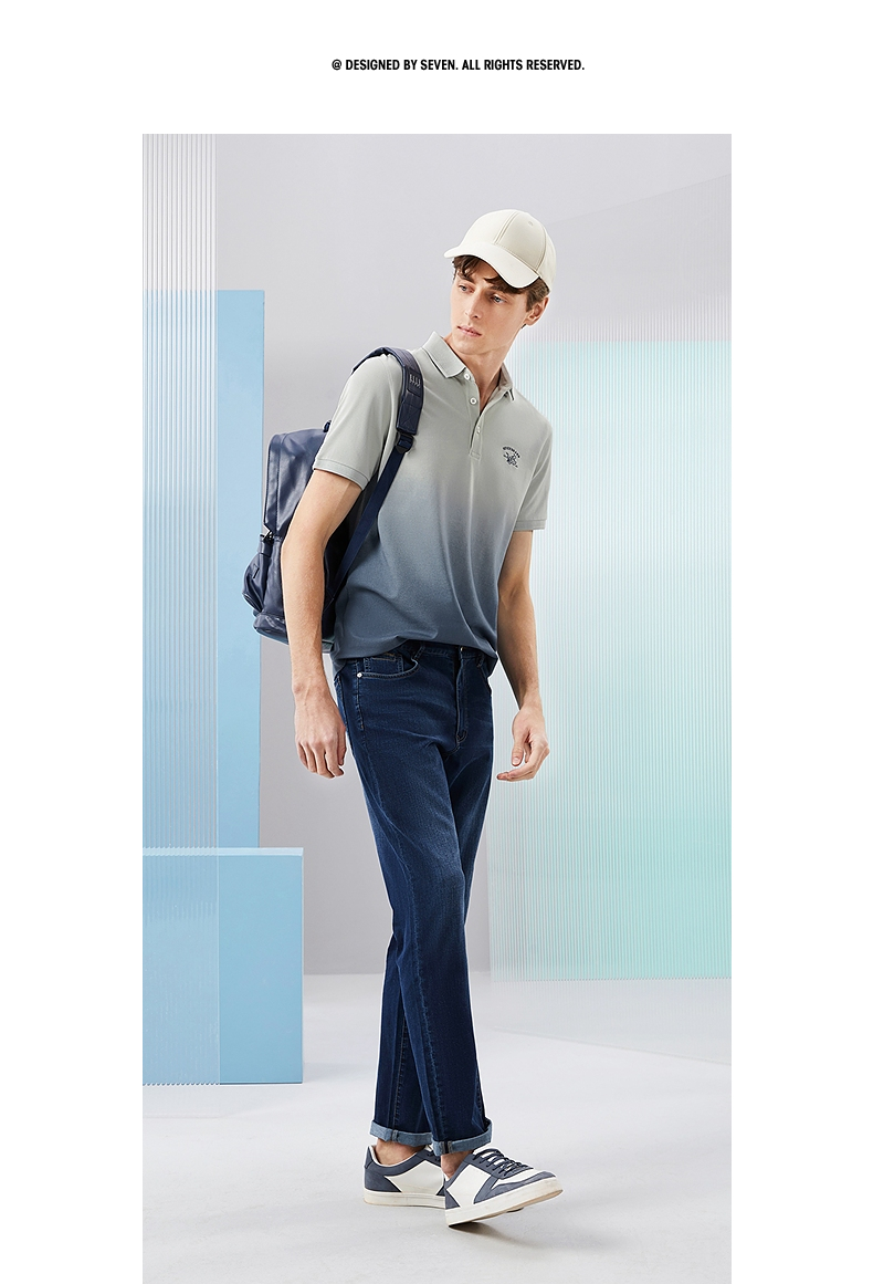 【5A抗菌】柒牌男士短袖polo衫夏季新款时尚休闲渐变印花翻领上衣 128T73080