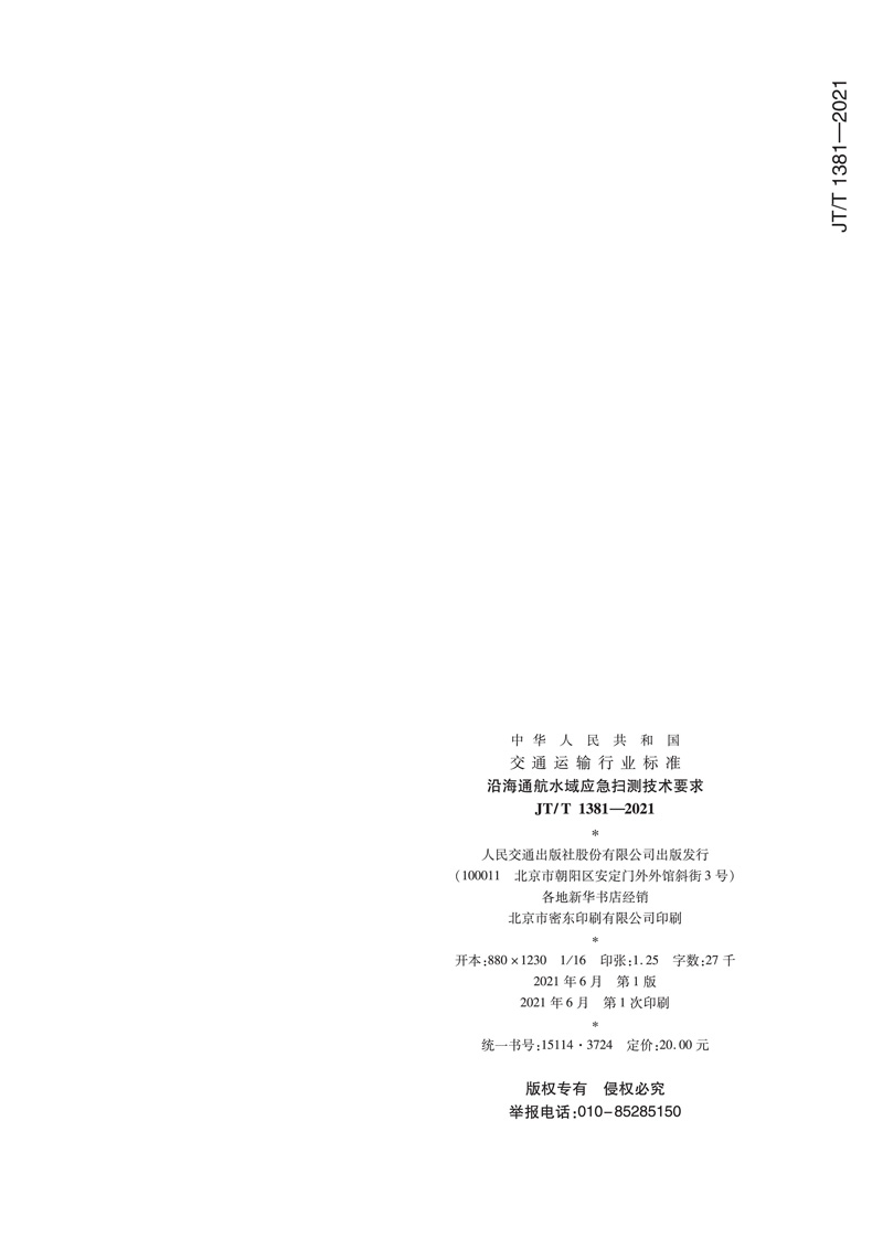 书名:沿海通航水域应急扫测技术要求(JT/T 1381—2021)