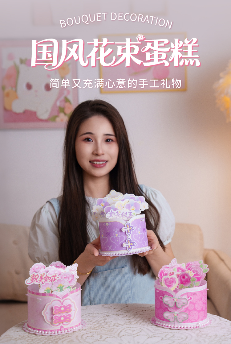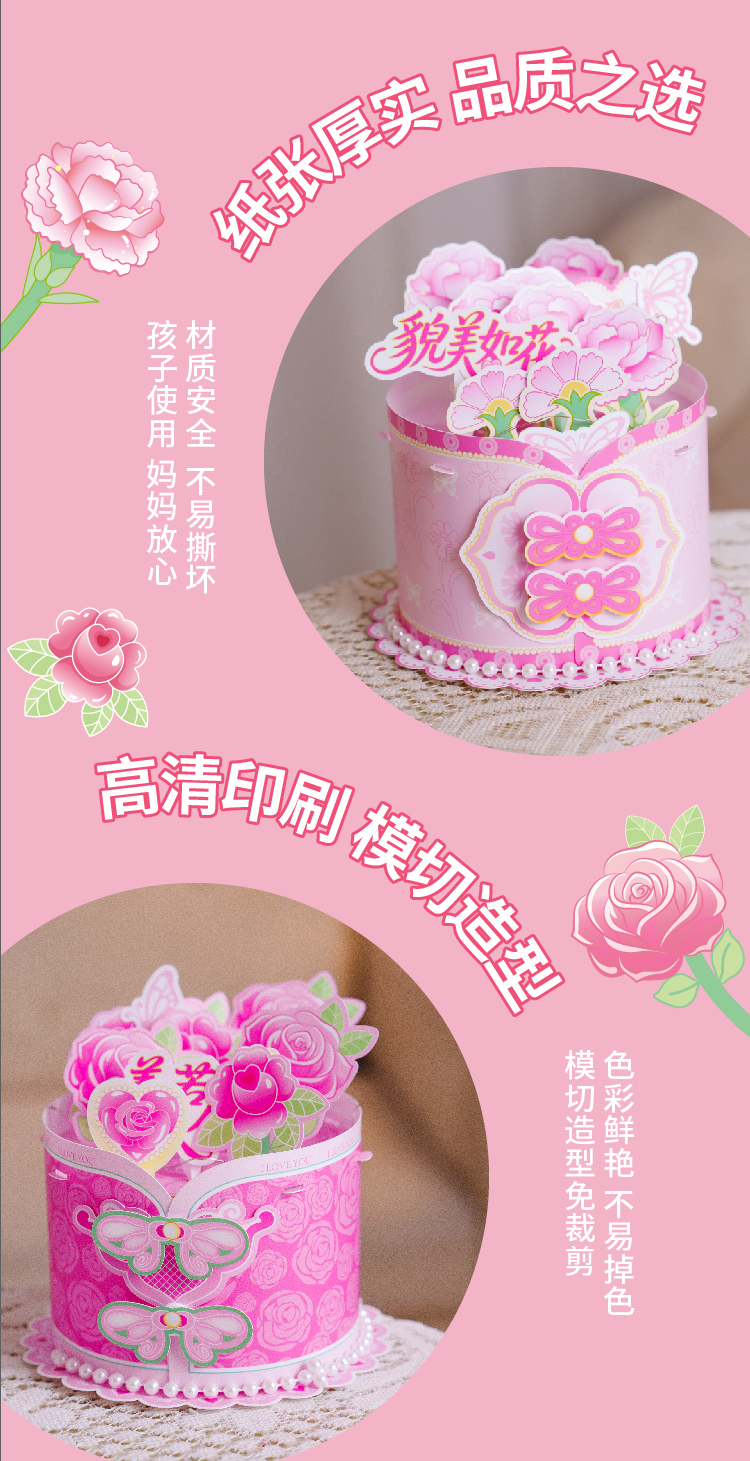 母亲节礼物活动国风花束蛋糕手工diy儿童制作材料包幼儿园送妈妈