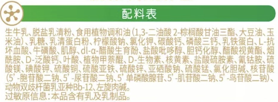 生牛乳+乳清蛋白+OPO 消化吸收配方