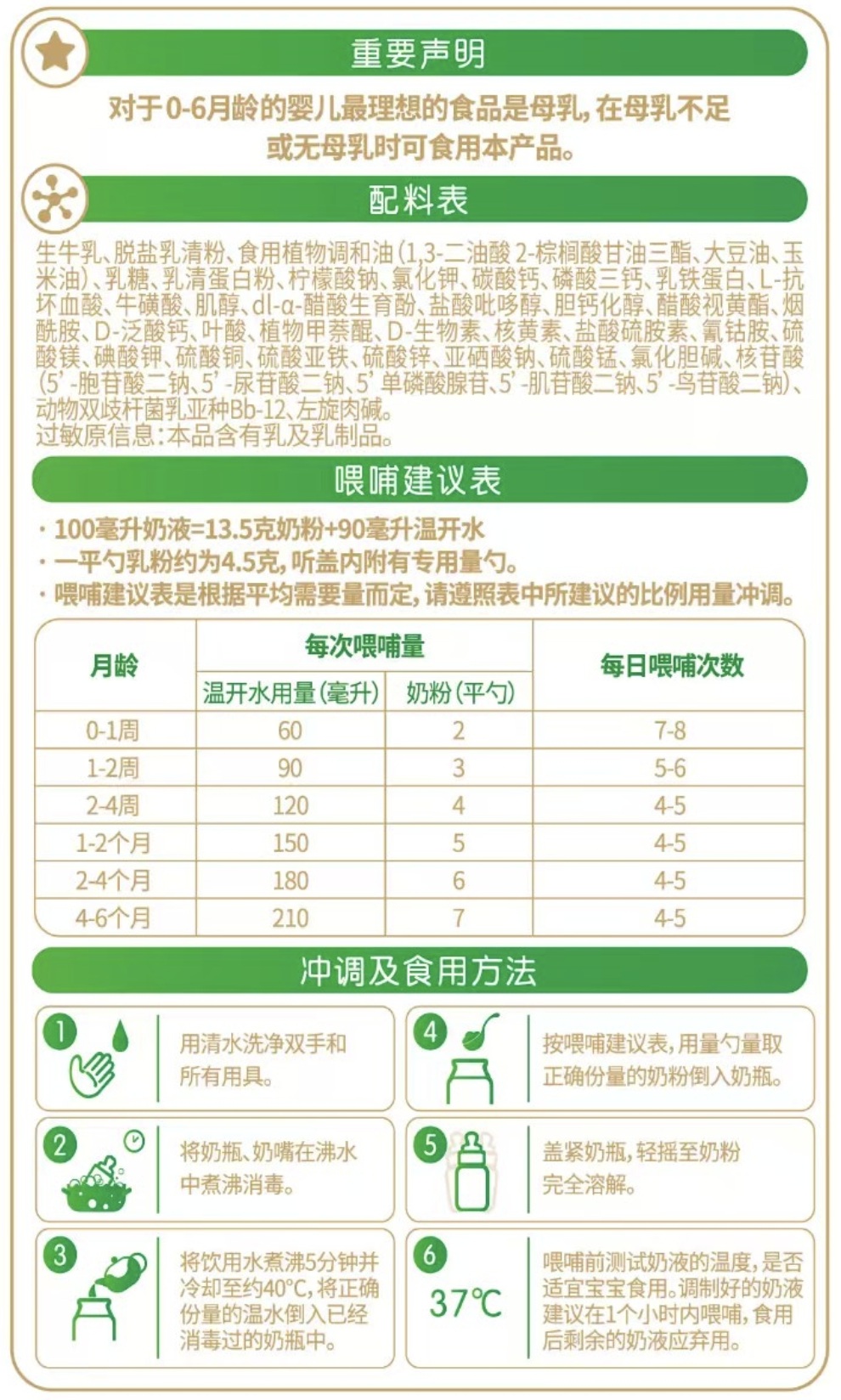 第四原料是乳糖,并且未添加其他糖,是100%全乳糖配方