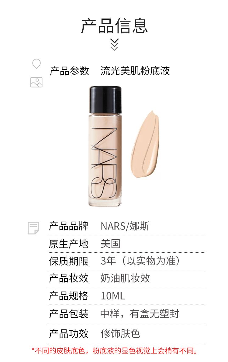 【预售 急单慎拍】NARS纳斯流光美肌超方瓶粉底液10ml