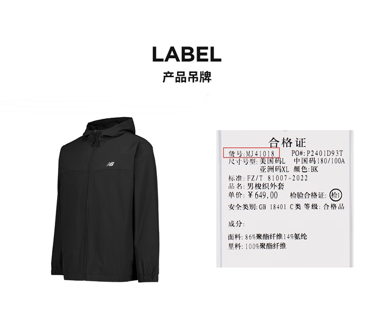 NEW BALANCE/男梭织外套NB户外运动防风衣上衣MJ41018