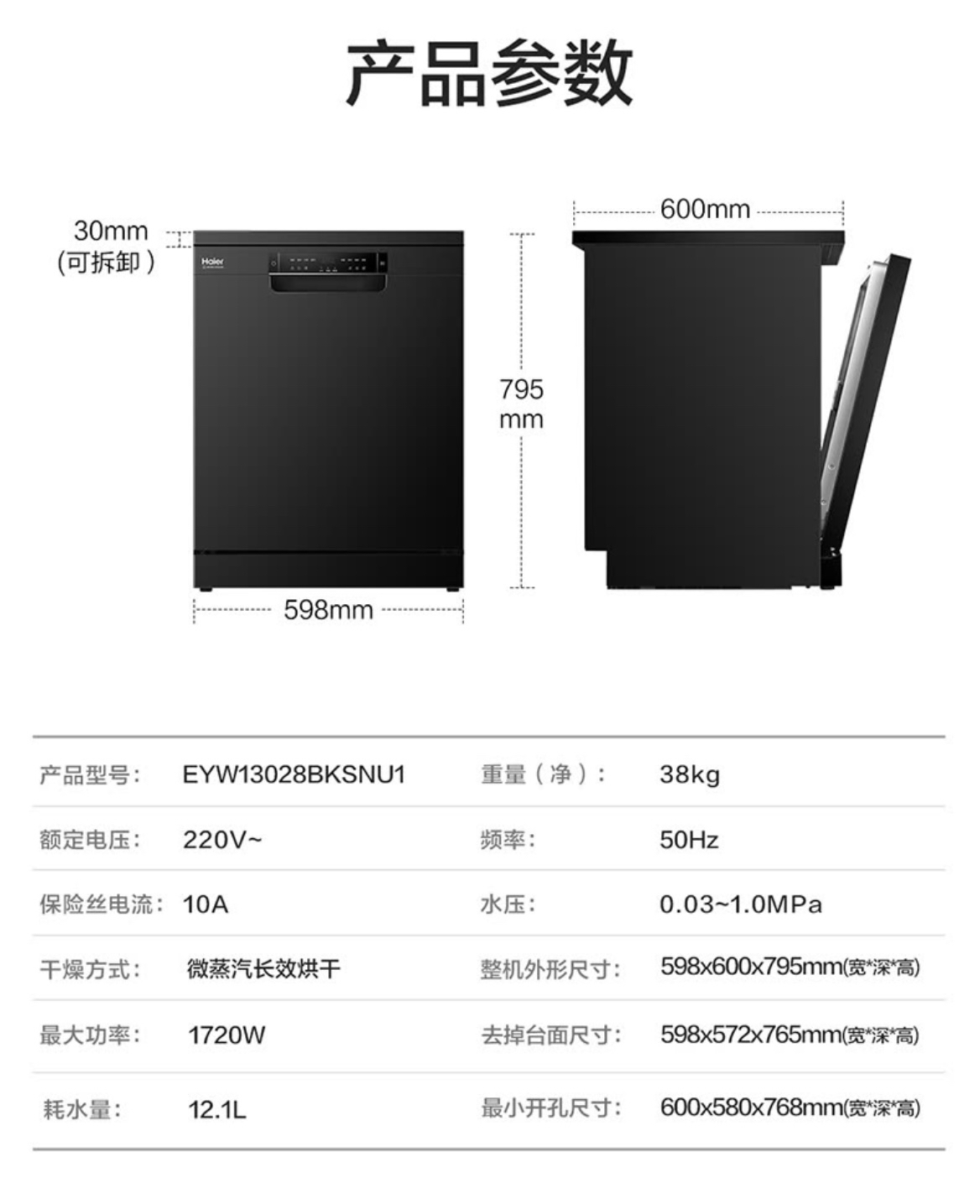 海尔(Haier)洗碗机 EYW13028BKSNU1