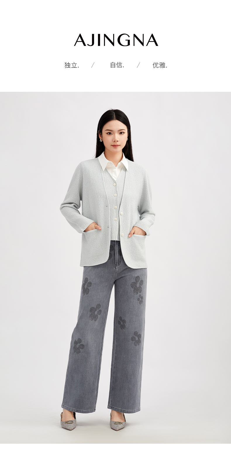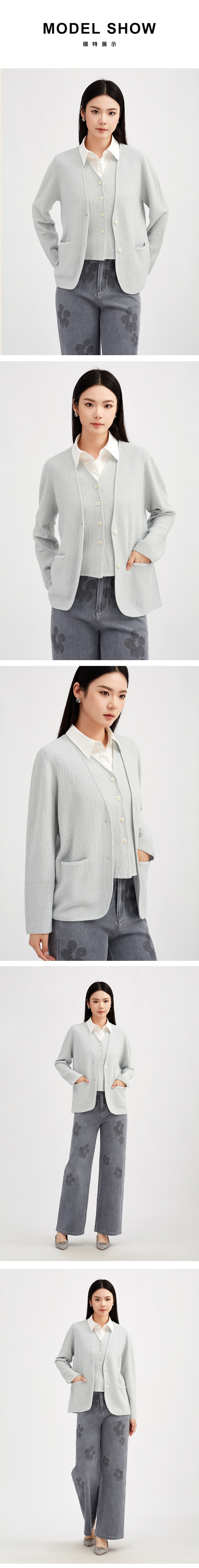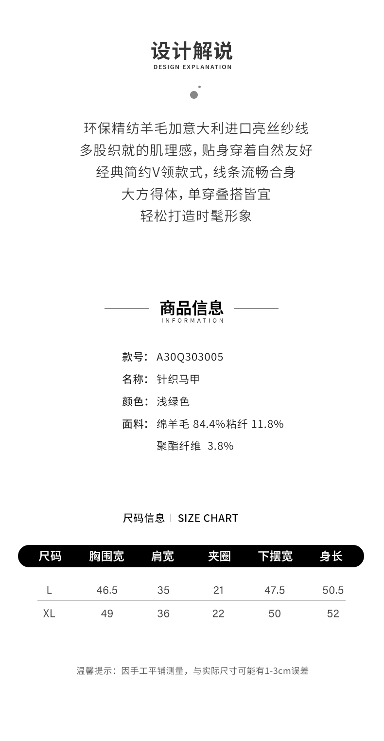 【商场同款】阿菁娜秋季新款进口亮丝羊毛马甲水绿肌理感V领针织衫叠穿百搭A30Q303005