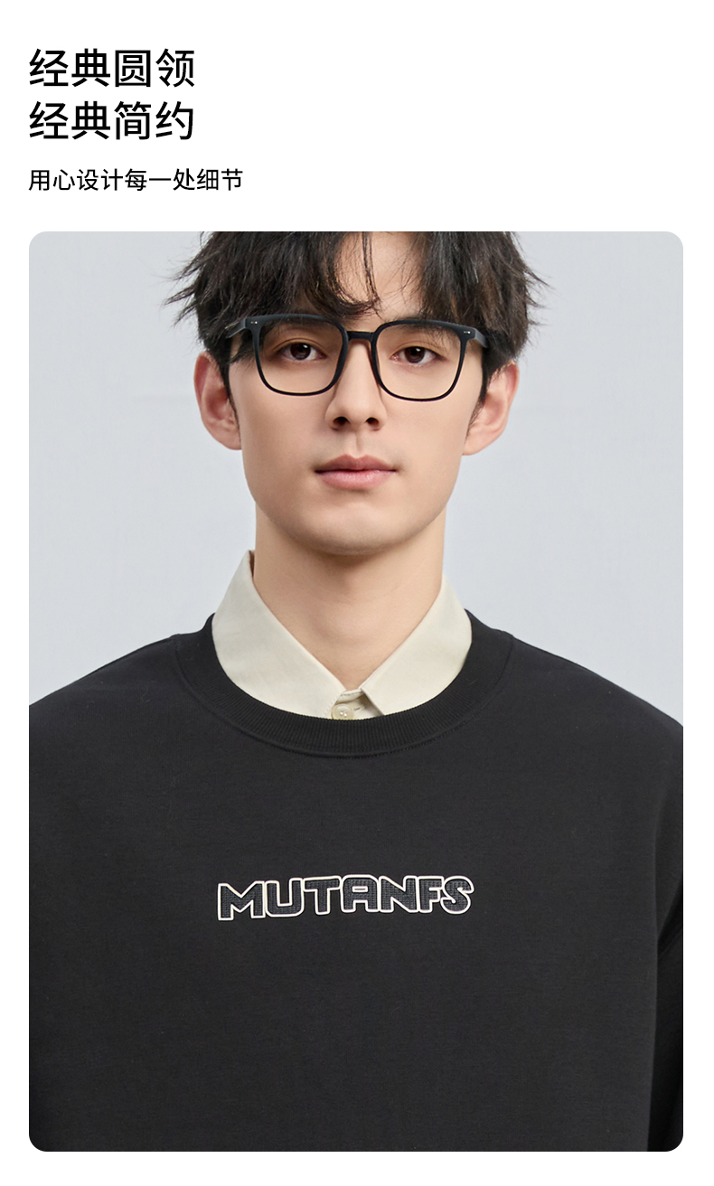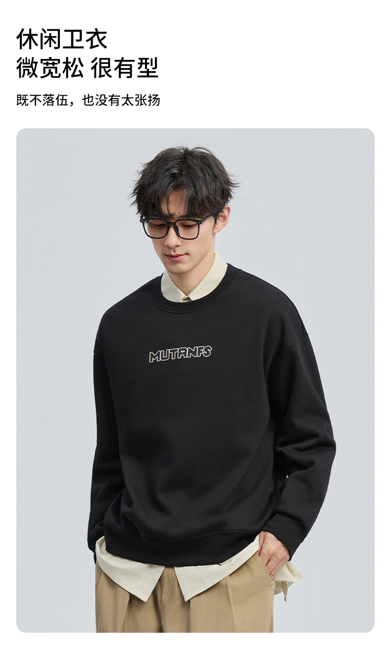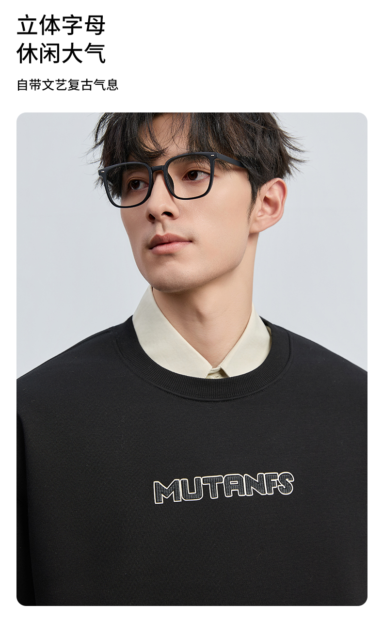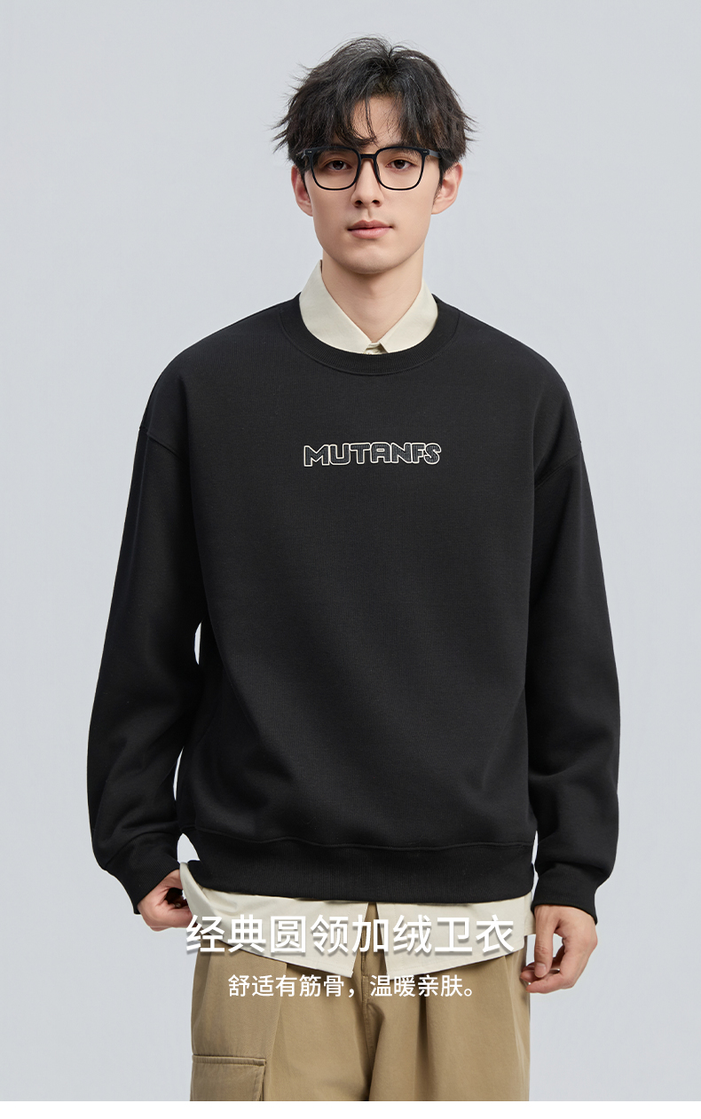 贝纳川冬季新品字母图案圆领加绒套头卫衣ECF424101