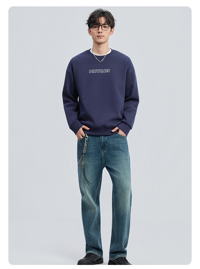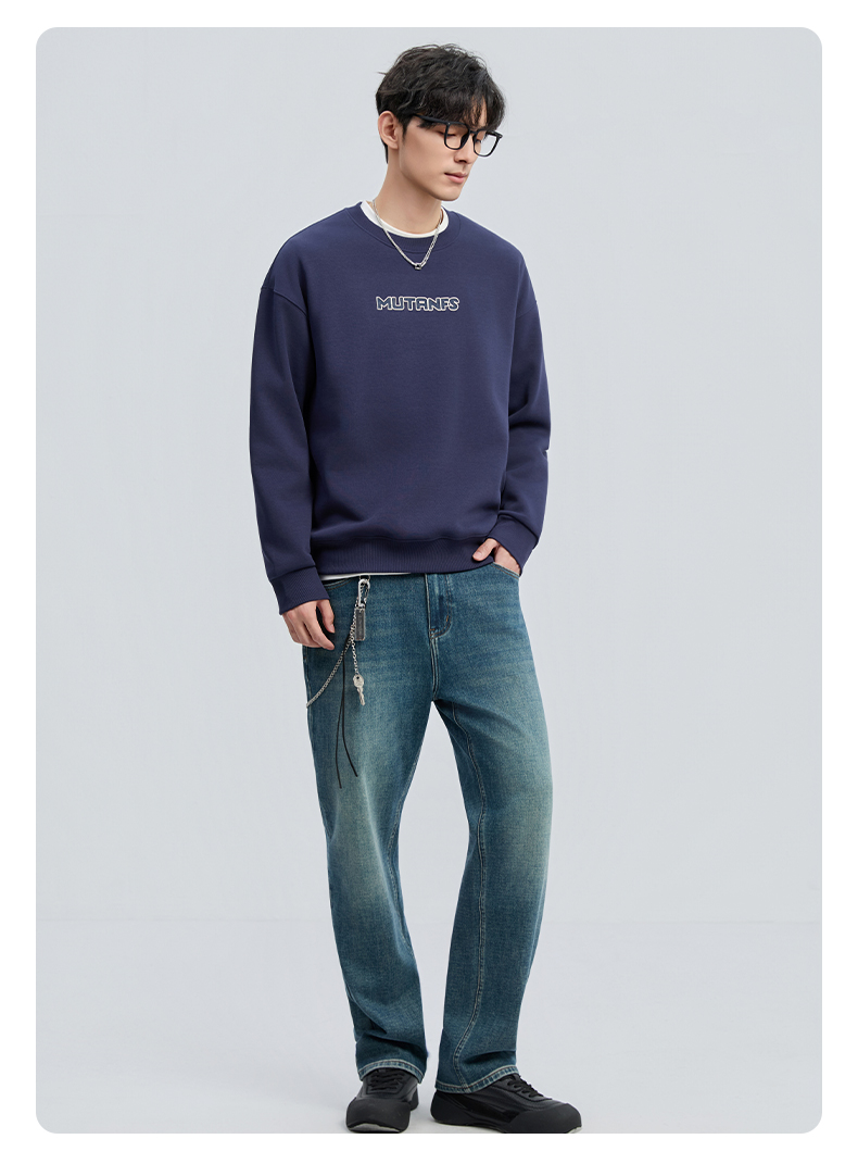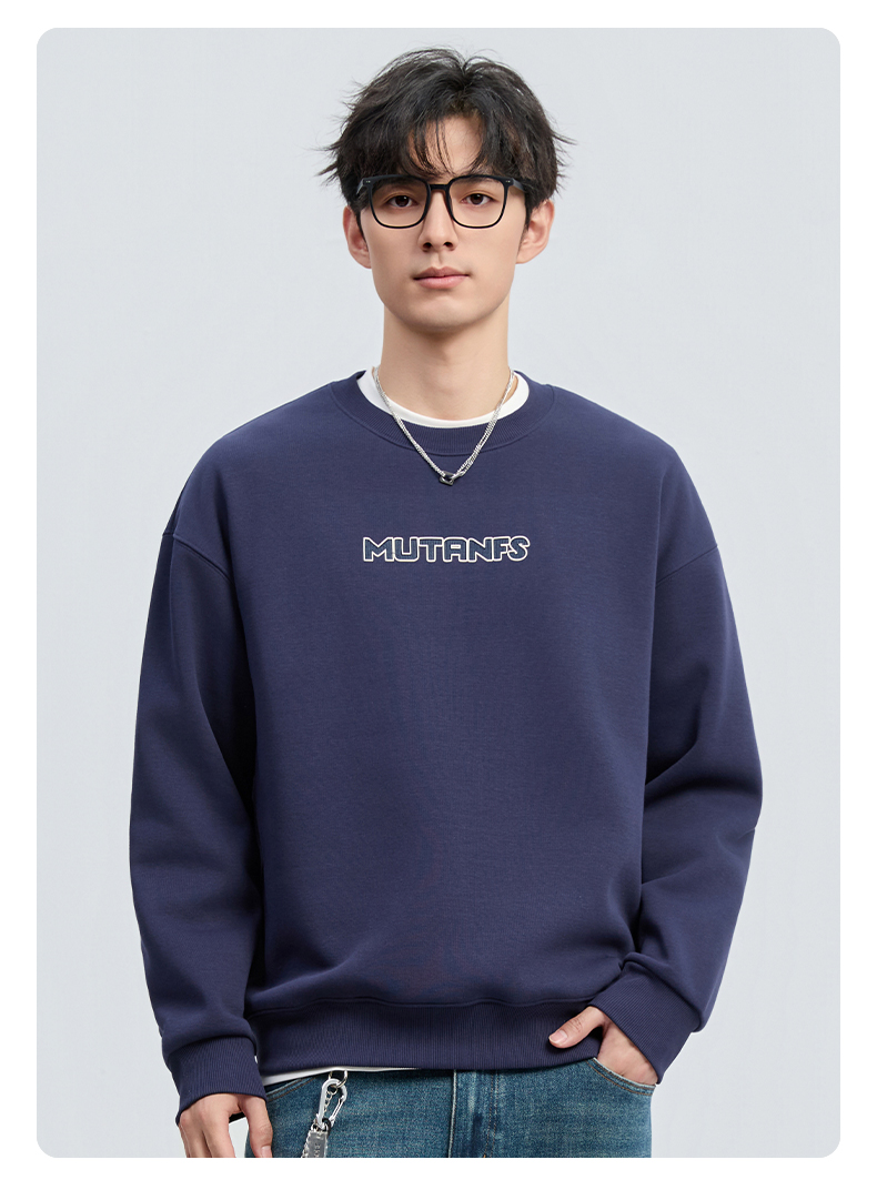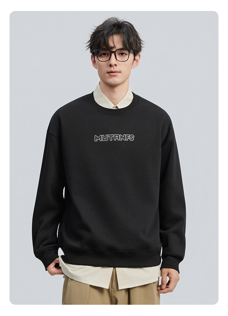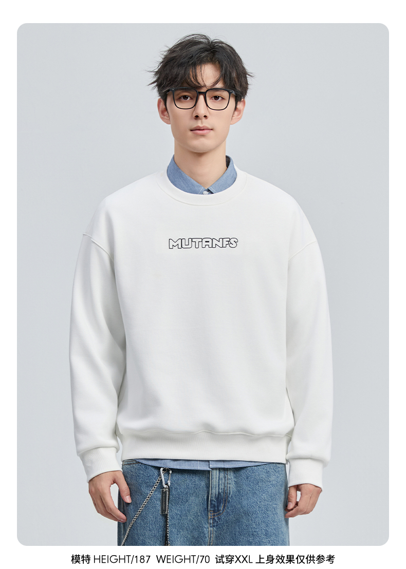 贝纳川冬季新品字母图案圆领加绒套头卫衣ECF424101