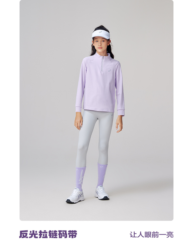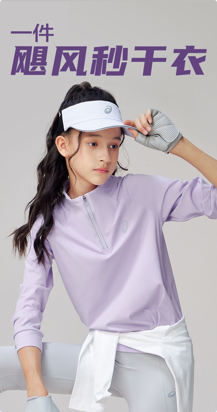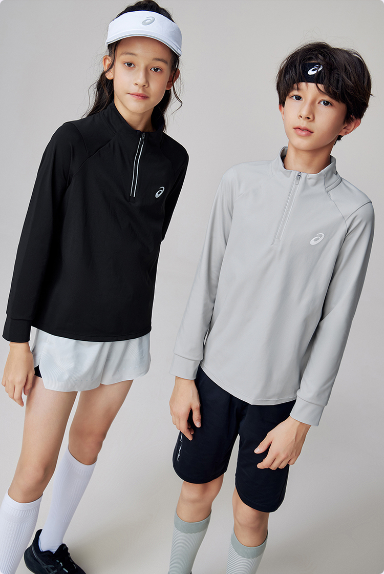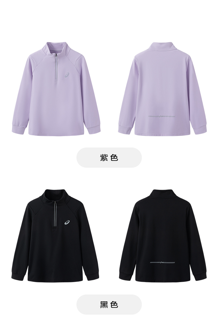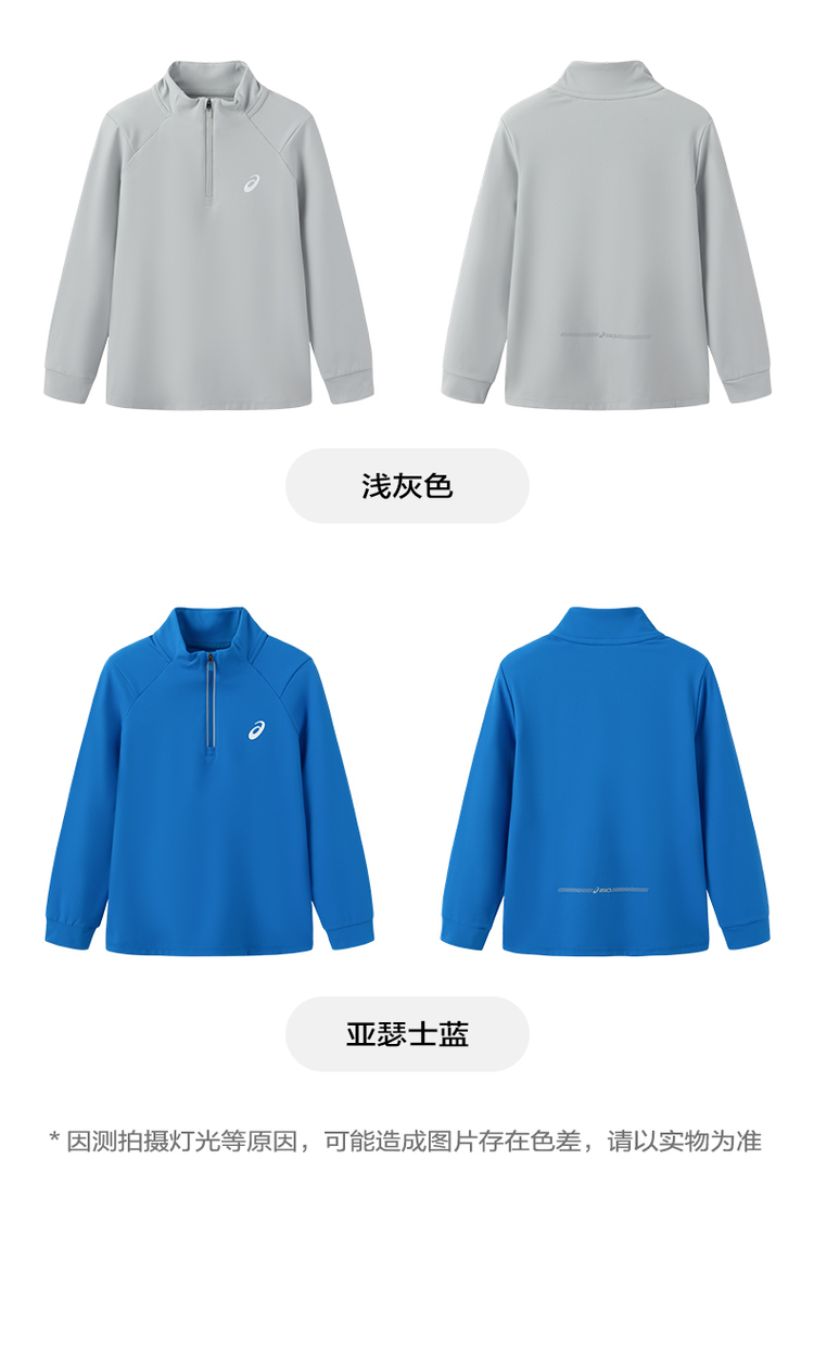 Asics/亚瑟士童装春季薄款拉链针织T恤吸湿速干运动舒适内搭新款