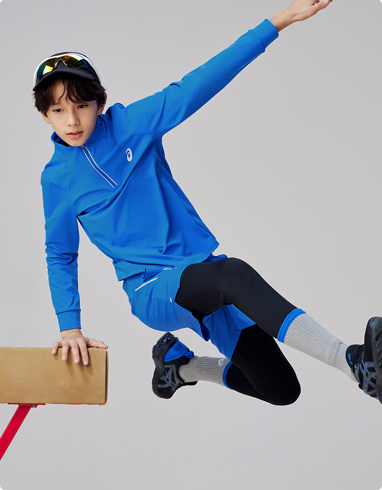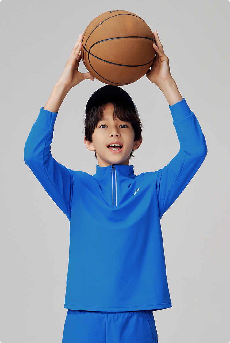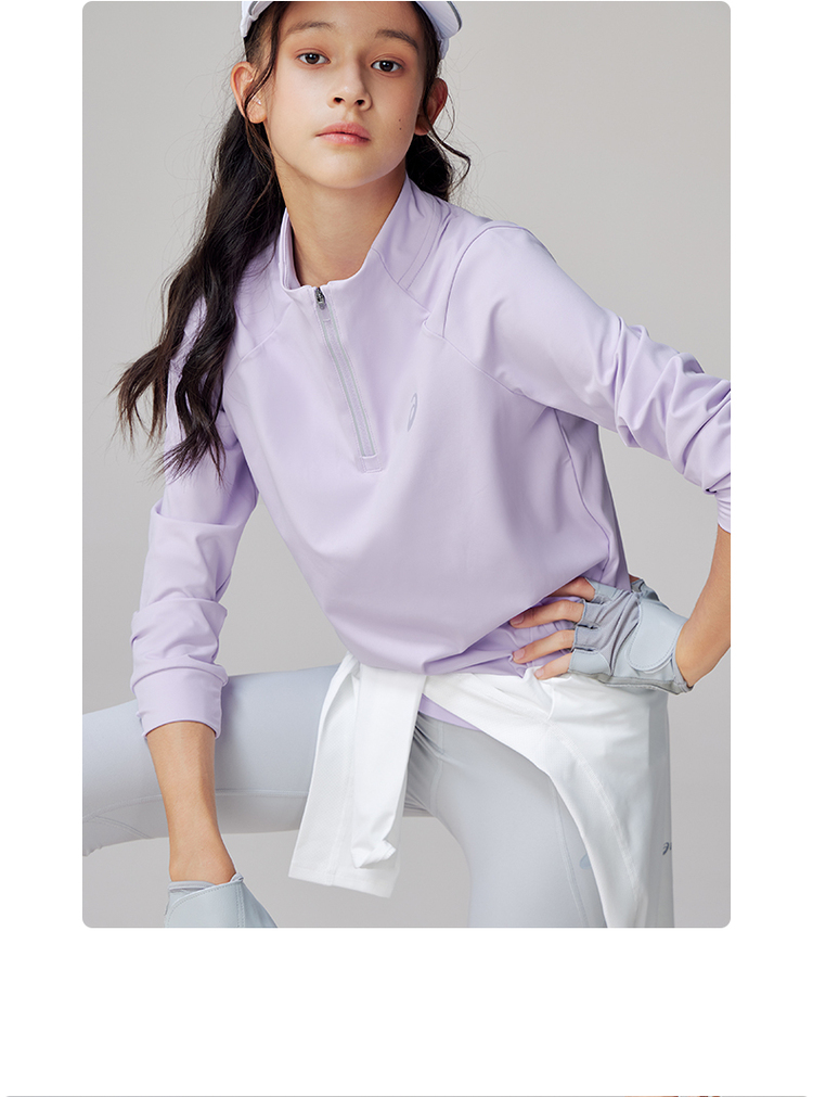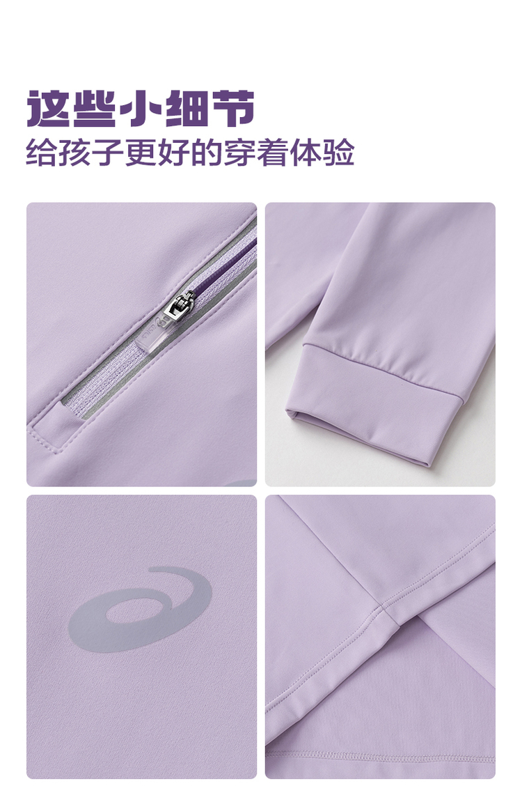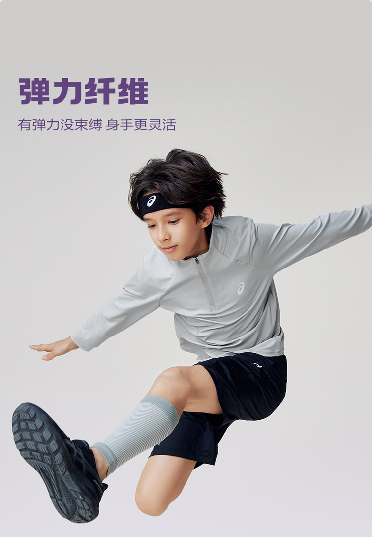 Asics/亚瑟士童装春季薄款拉链针织T恤吸湿速干运动舒适内搭新款