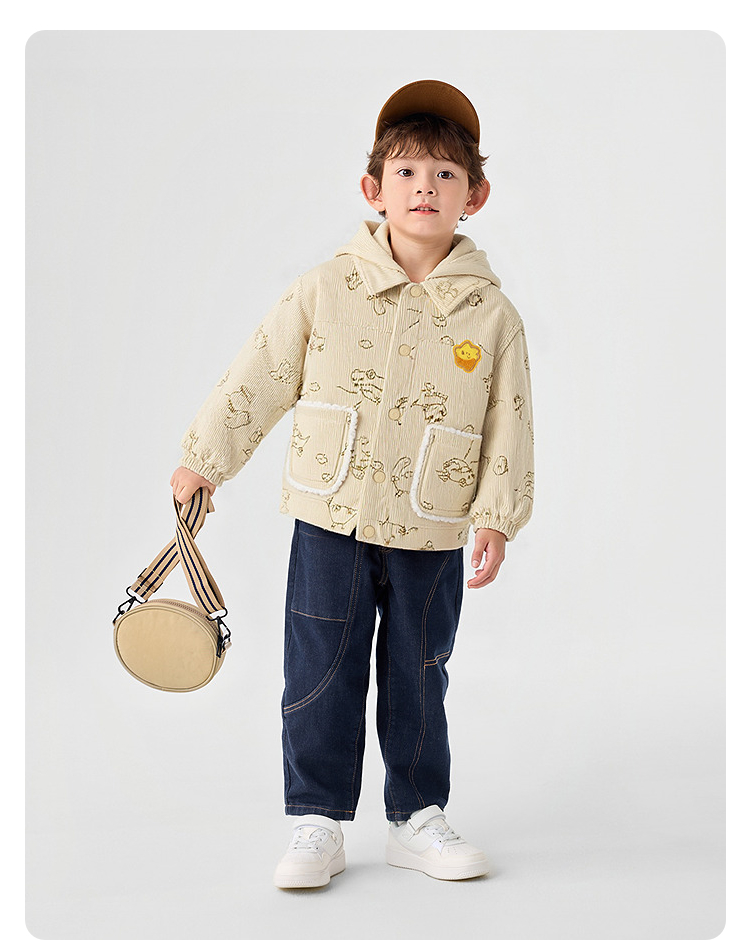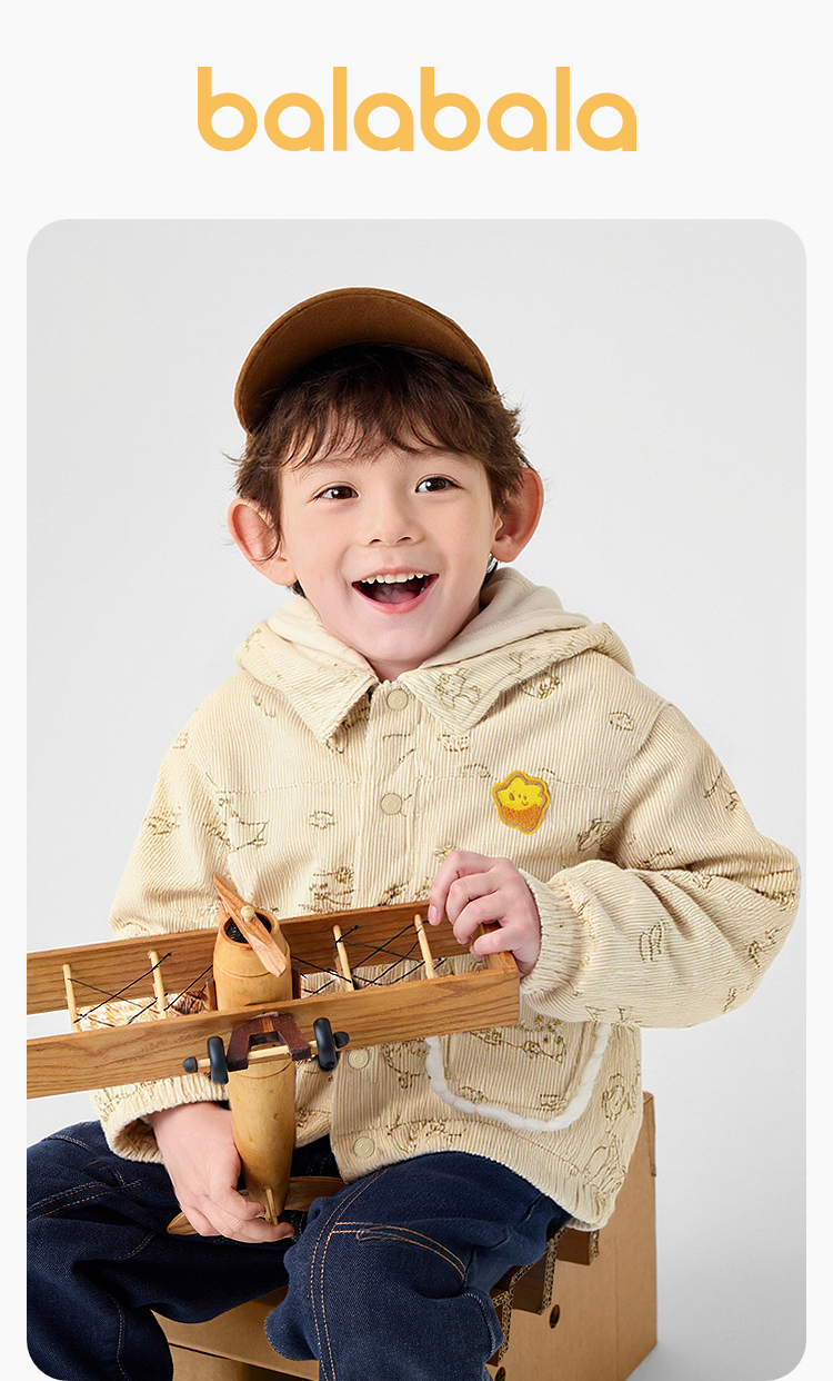 巴拉巴拉男童棉服恐龙印花外套假两件潮2025新款冬装