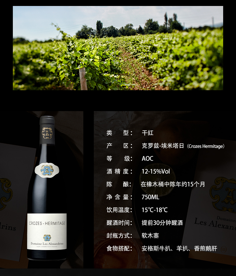 亚历士赞歌酒园-克罗兹埃米塔日红葡萄酒 Domaine Les Alexandrins Crozes-Hermitage Rouge