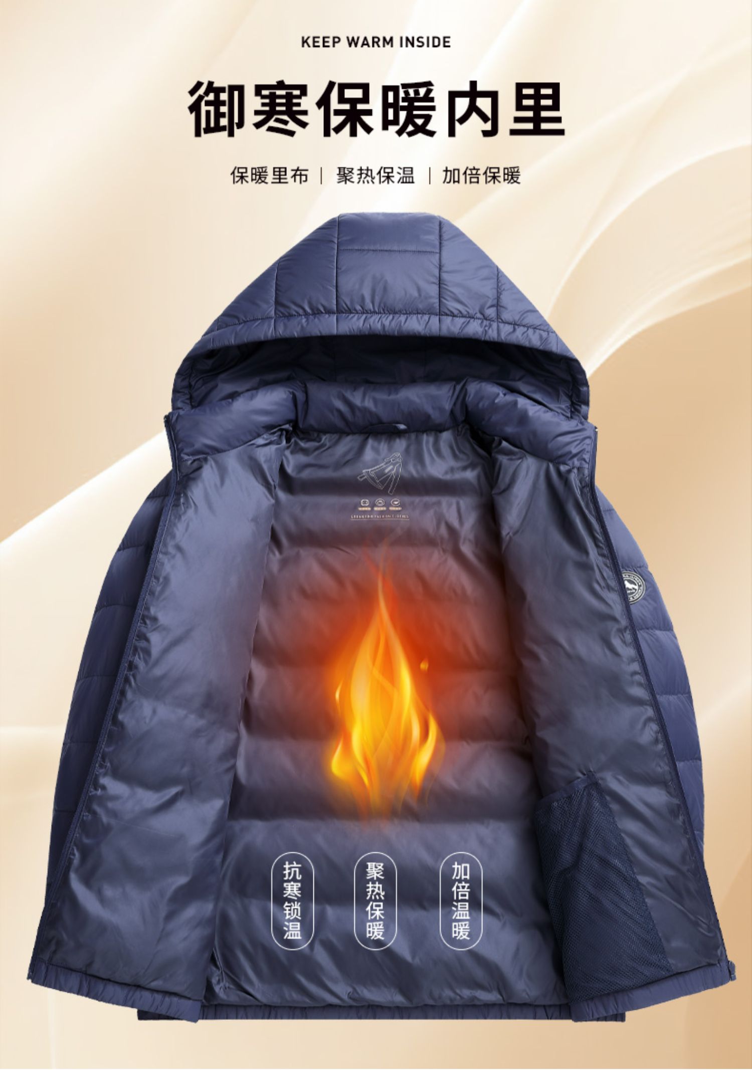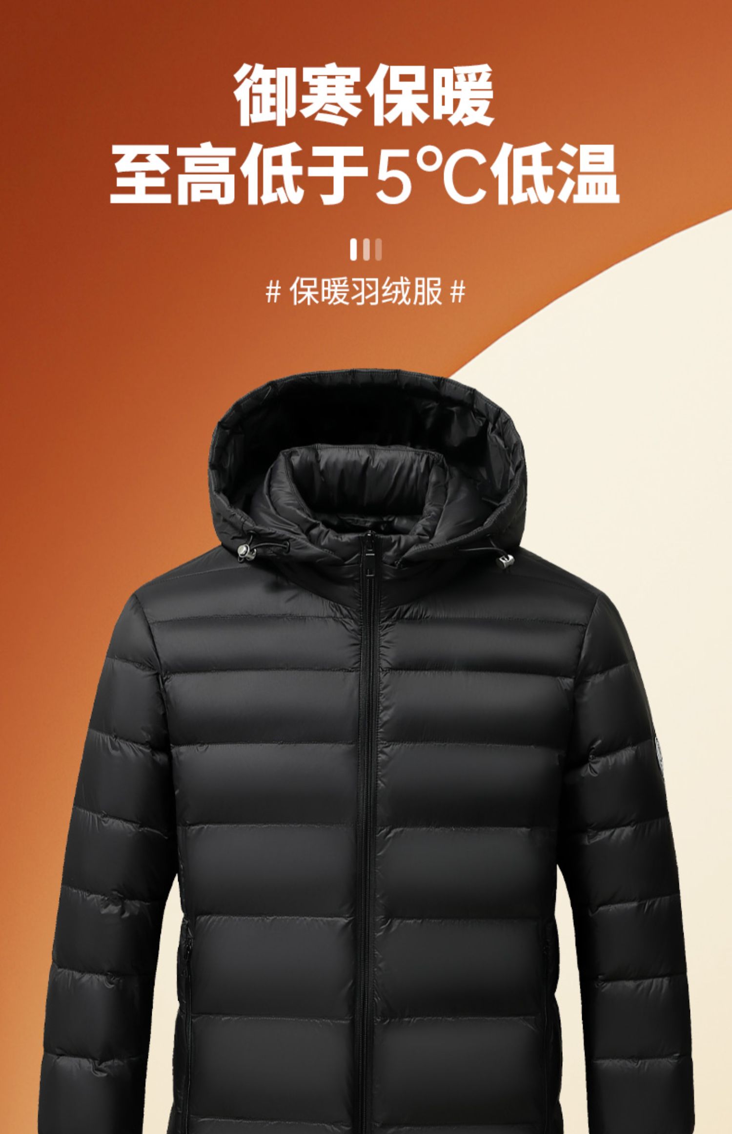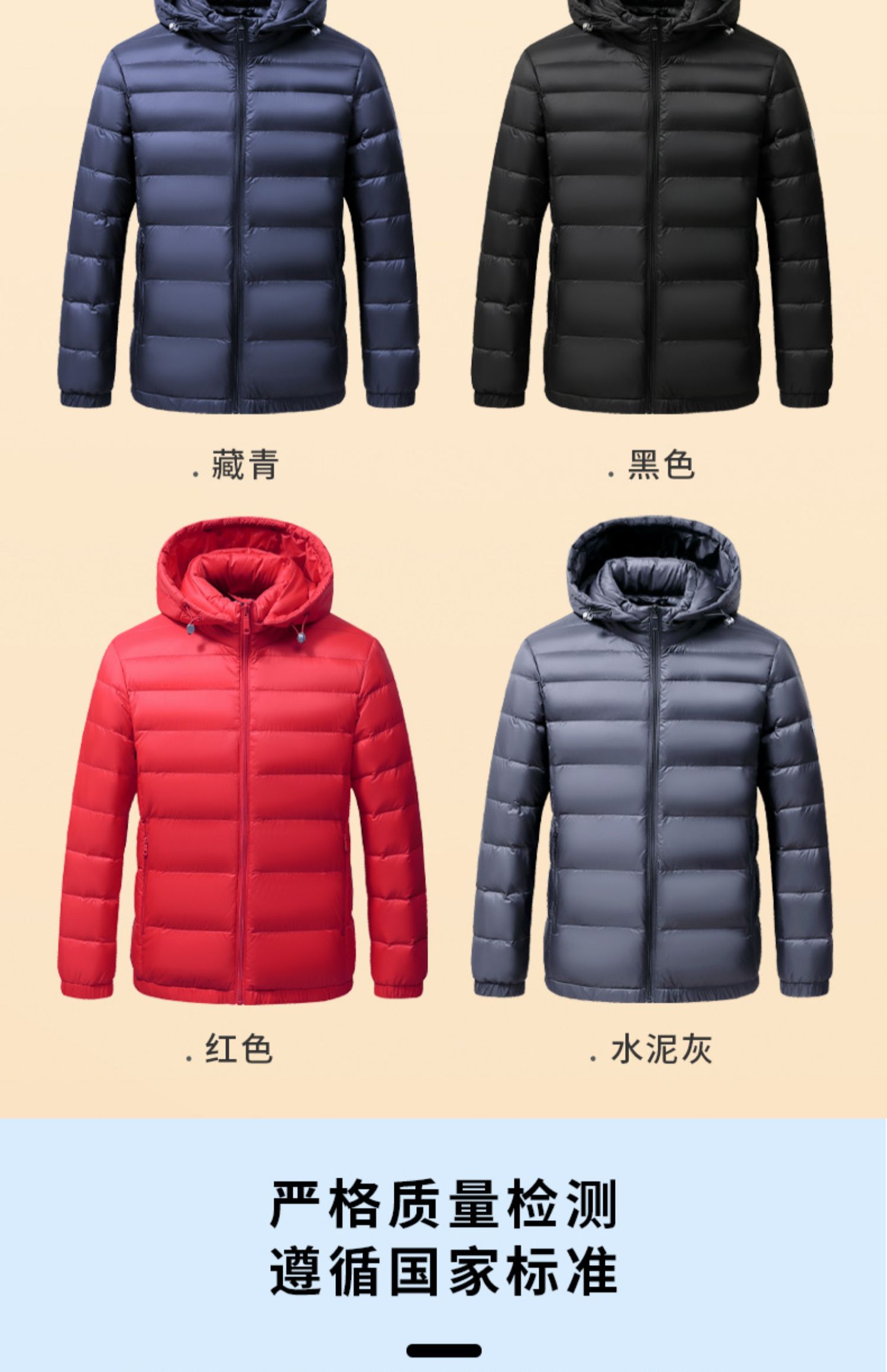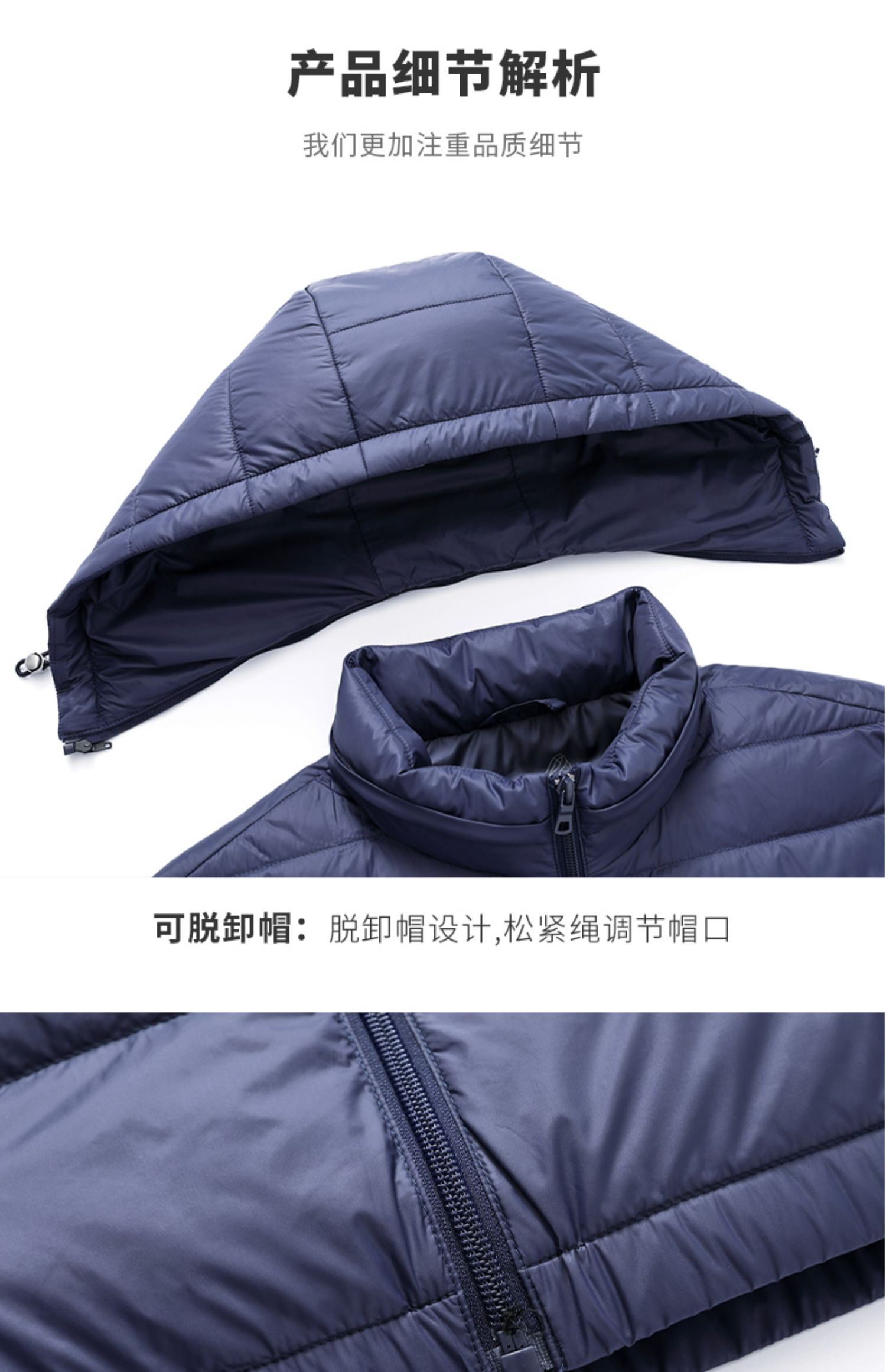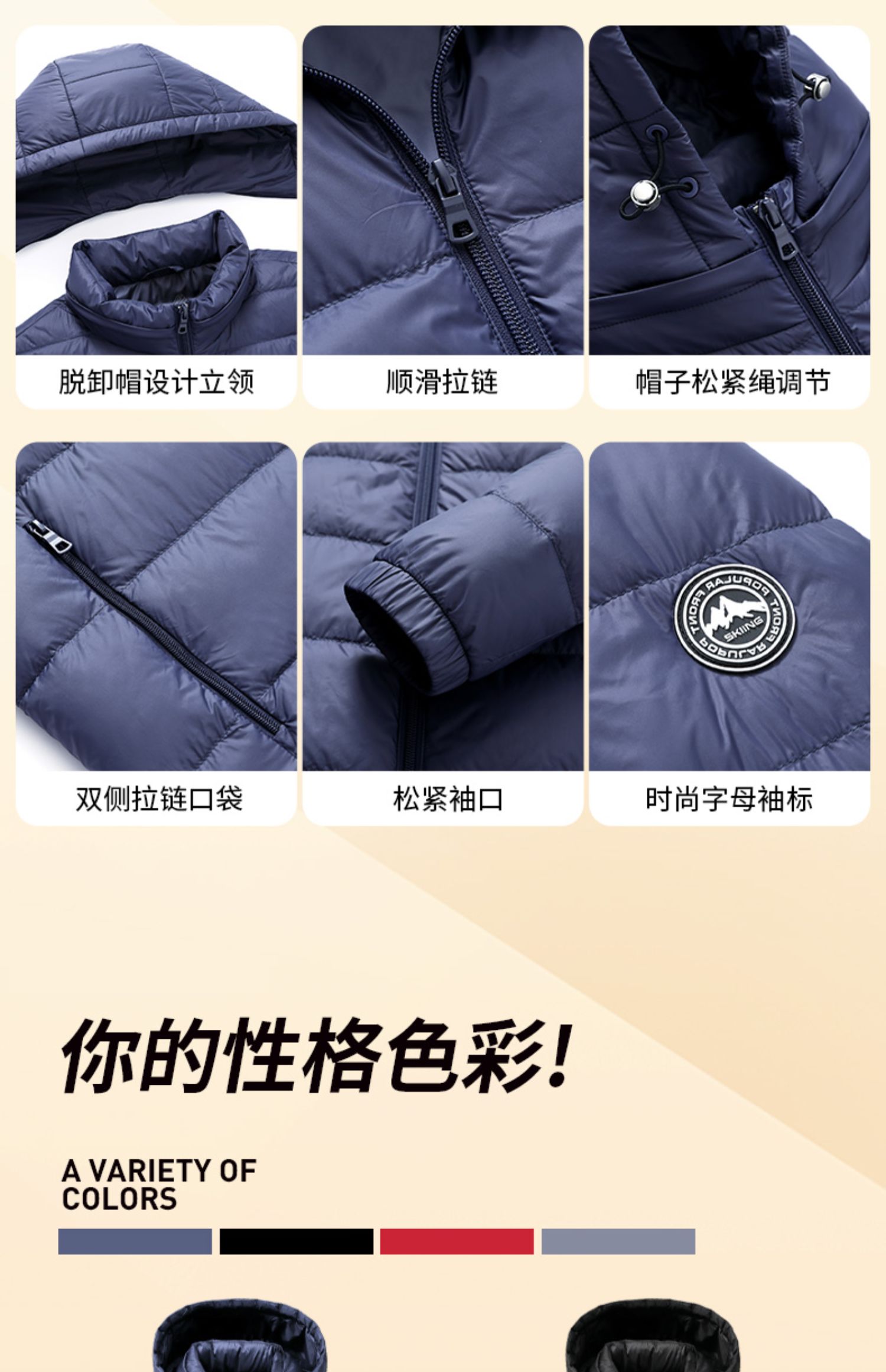 圣得西轻暖羽绒服2024秋冬新款薄款连帽可拆卸纯色面包服羽绒外套