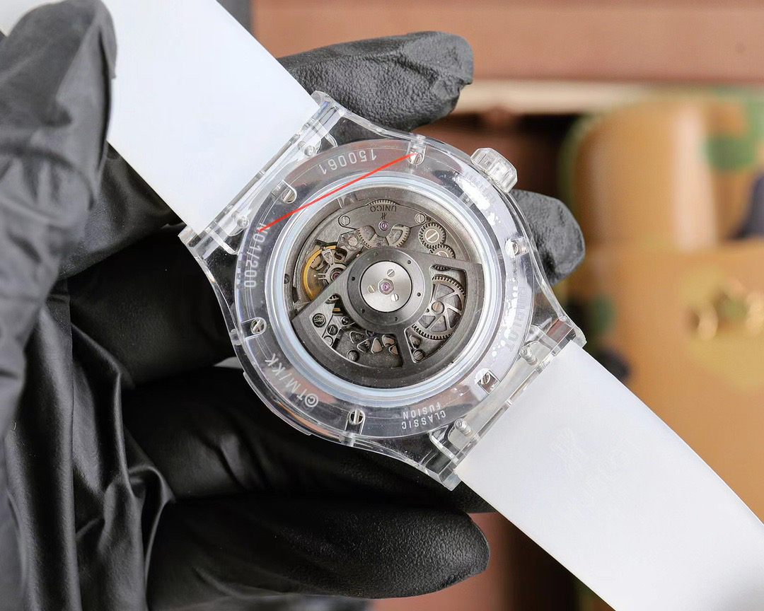 再来看看机芯,MHUB1214 UNICO 复杂功能自动上链机芯堪称制表工艺的巅峰之作。烟灰色钌金属夹板和表桥,赋予了机芯独特的视觉效果。烟灰色涂层摆轮和钨金属摆轮,不仅在外观上独具特色,更保证了机芯的精准运行。表面润饰采用微珠喷砂和缎面工艺,细腻而精致。擒纵机构采用瑞士硅质杠杆式,组件数量达到 256 个,宝石数量为 30 颗。4 赫兹的振频(每小时 28,800 次)确保了时间的精准度,而 72 小时的动力储存则为你提供了可靠的时间保障。