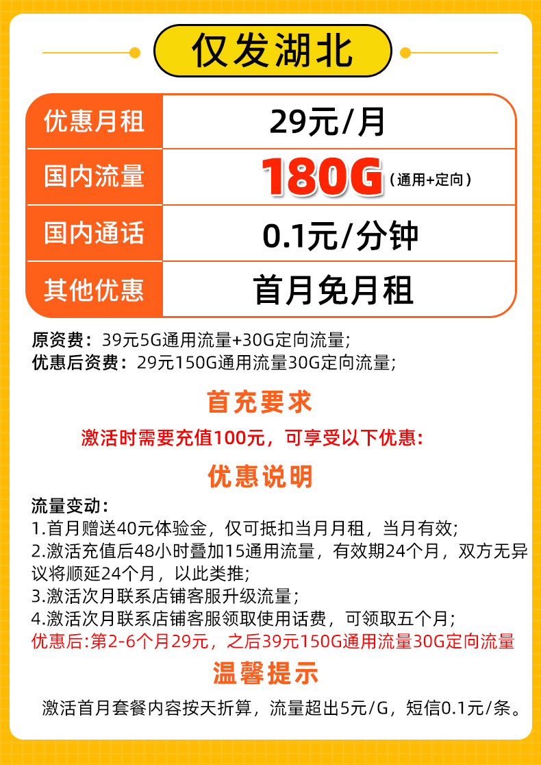 广电长期手机卡29元/月60G全国流量+多用多送30G