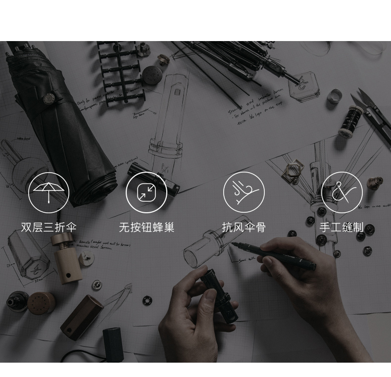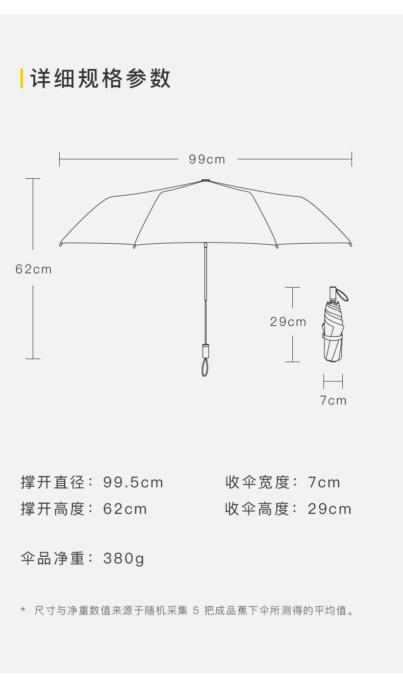 【一般贸易】蕉下双层小黑伞 三折伞 晴雨两用