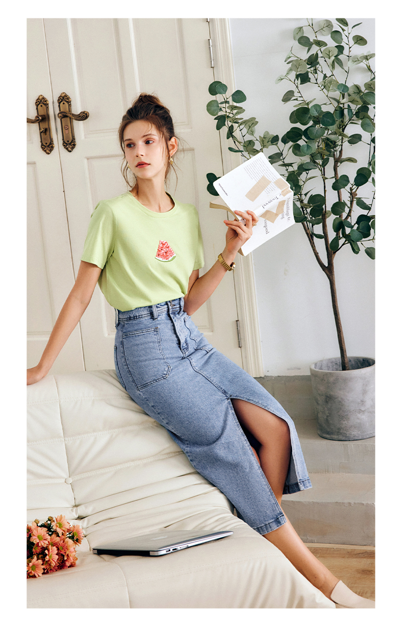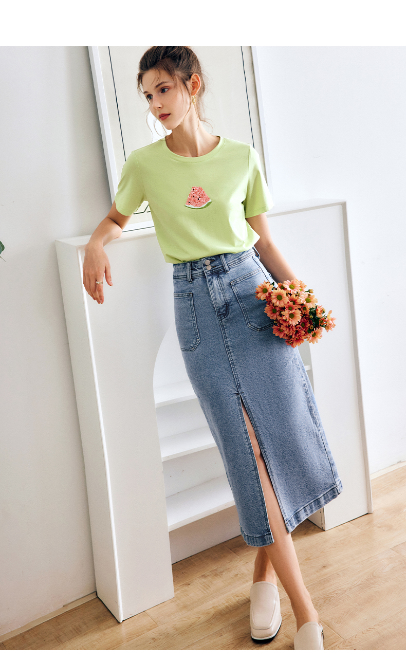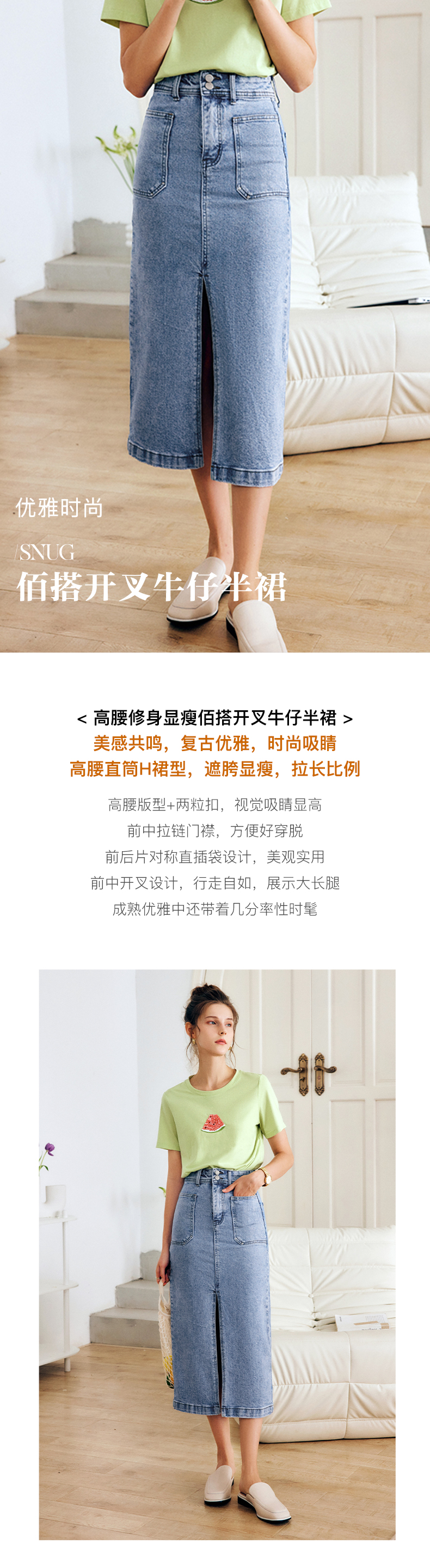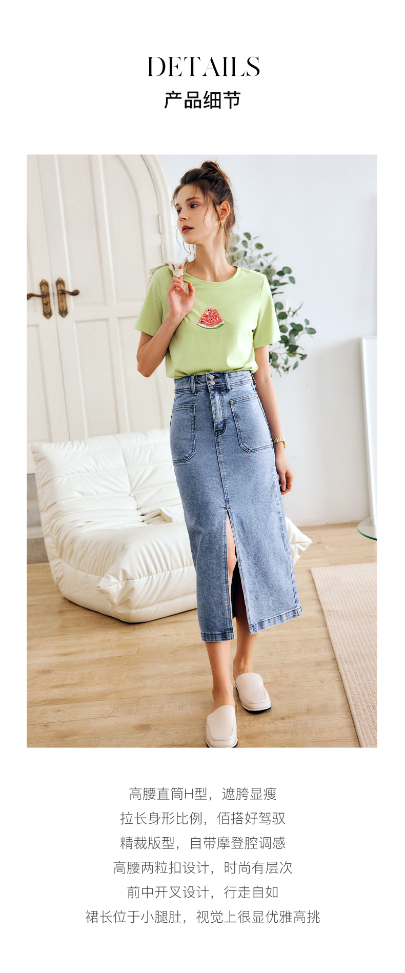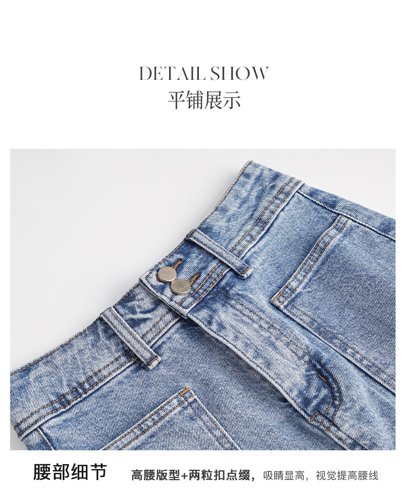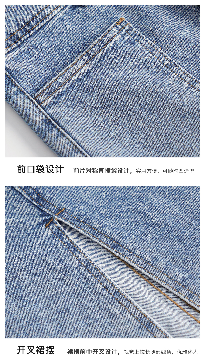 OLrain法式牛仔半身裙女夏季2022新款高腰气质显瘦开叉包臀A字裙