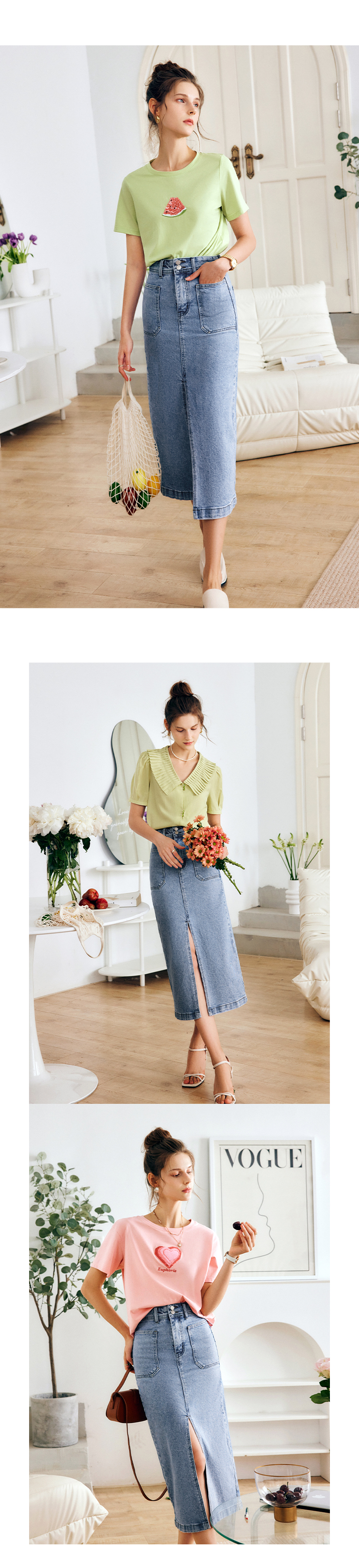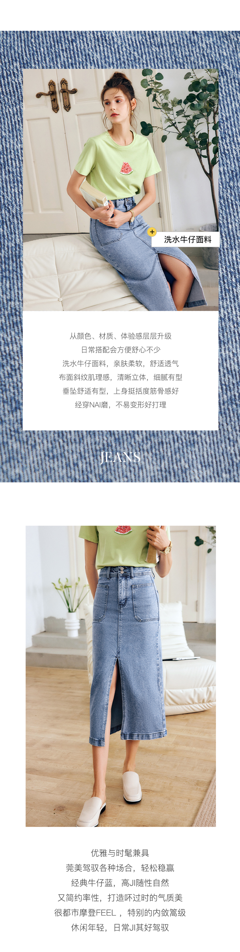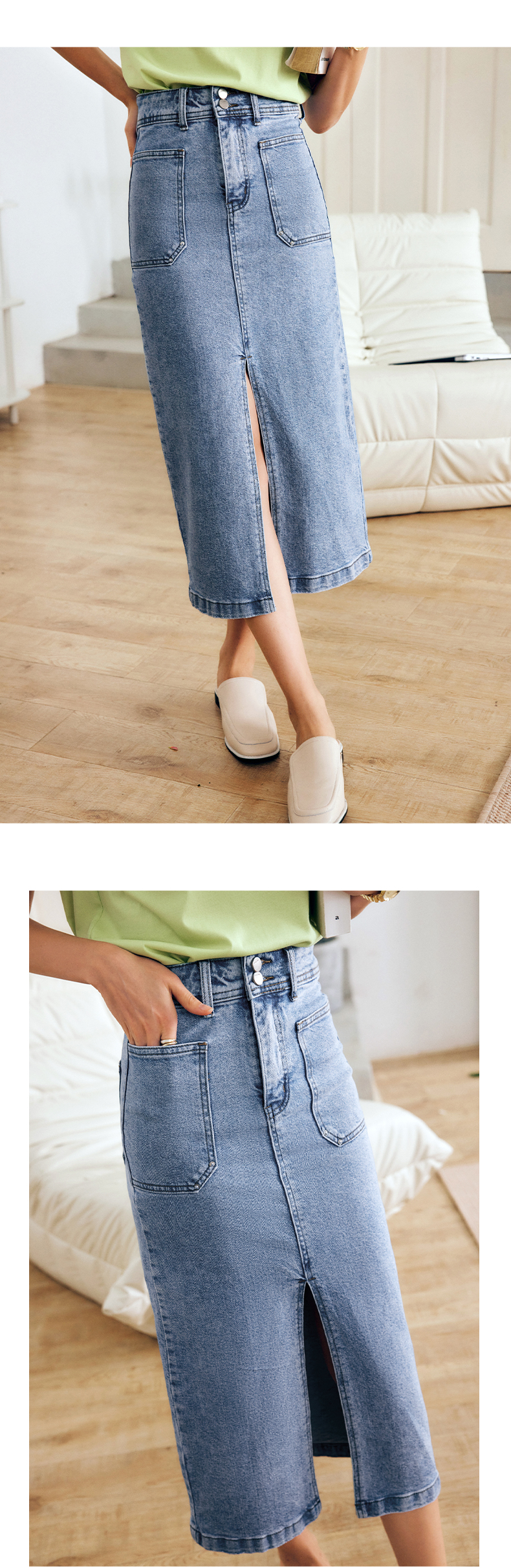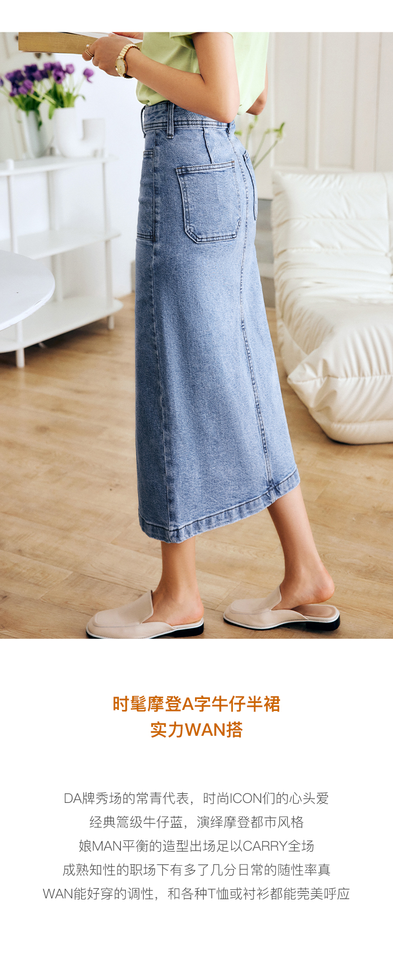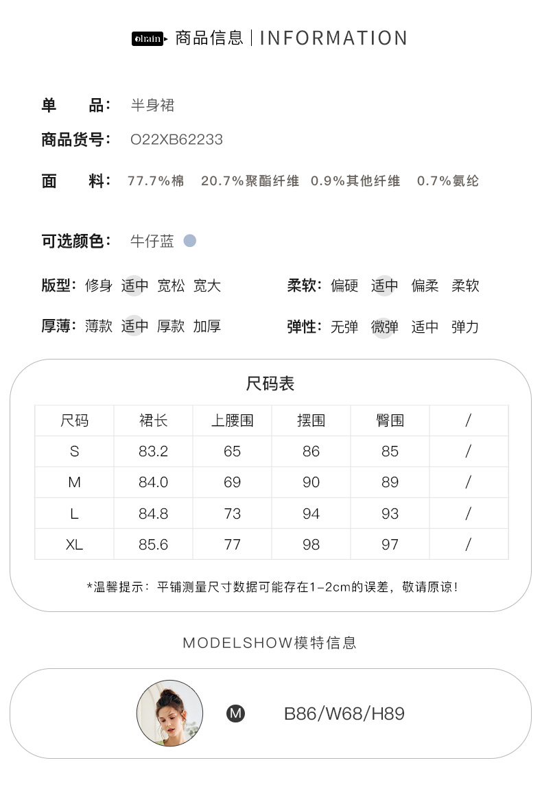 OLrain法式牛仔半身裙女夏季2022新款高腰气质显瘦开叉包臀A字裙