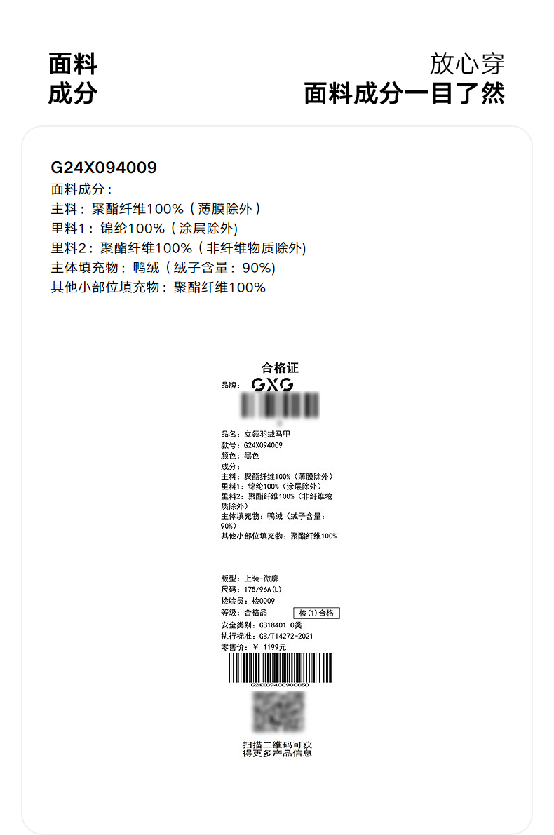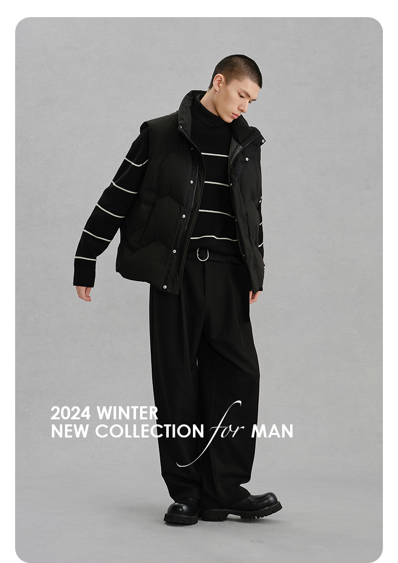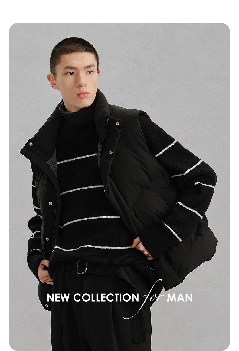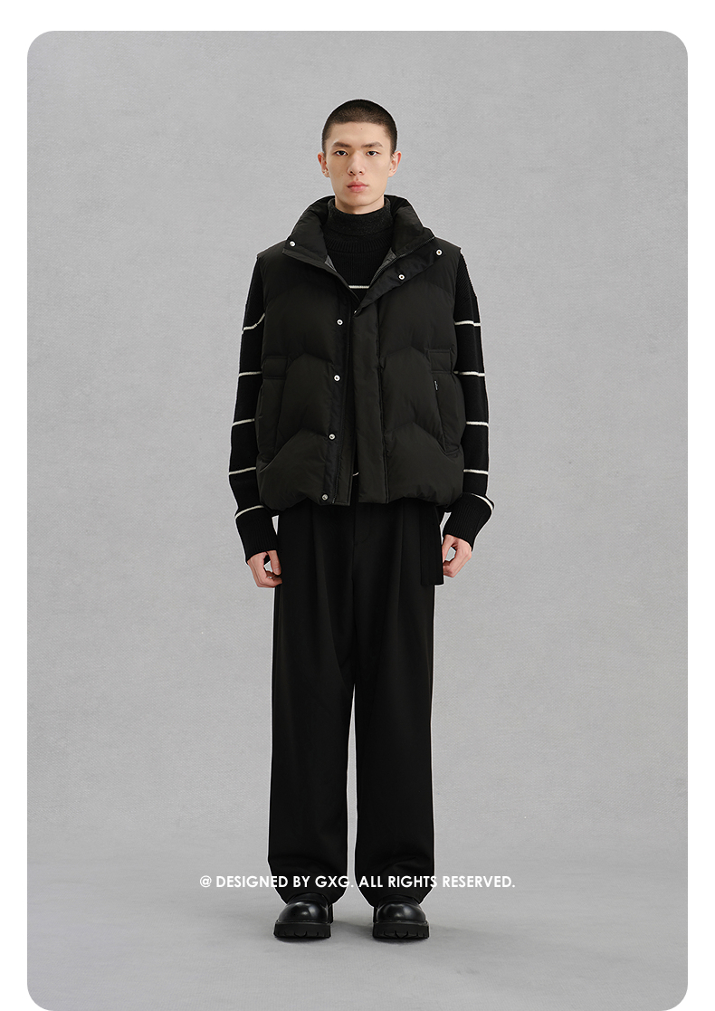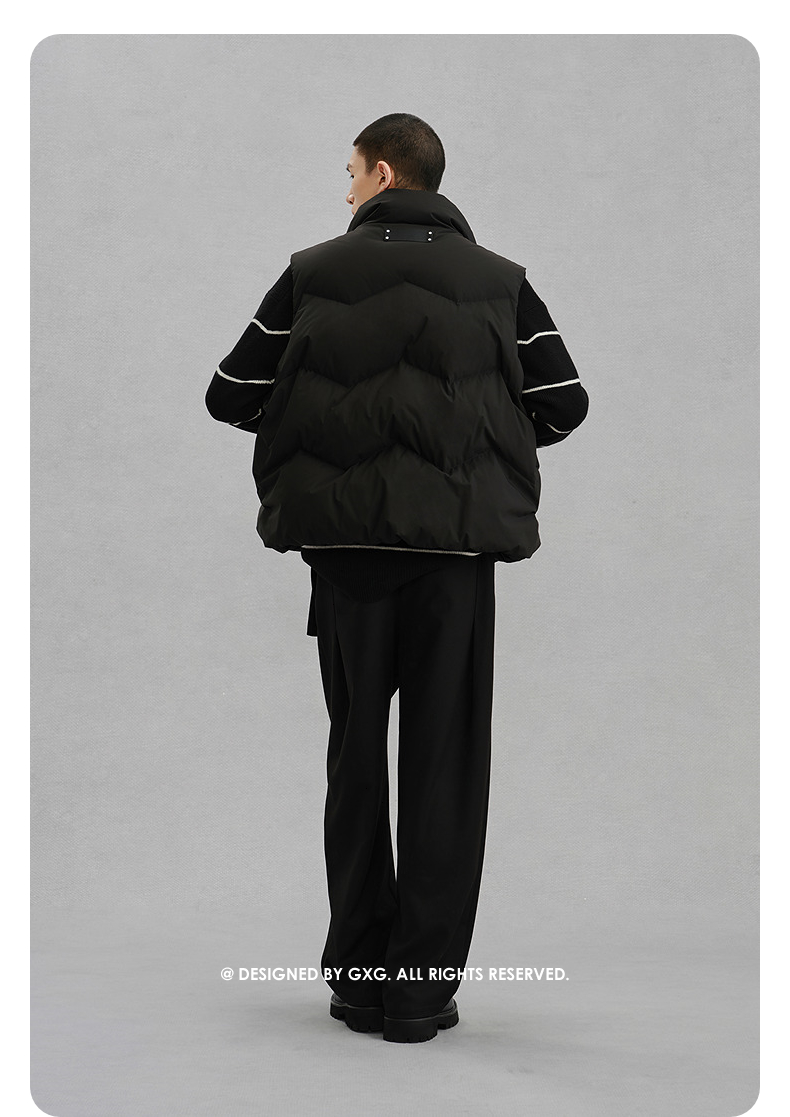 GXG男装 黑色暗格立领通勤羽绒马甲男 冬季马甲G24X094009