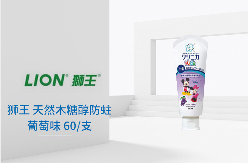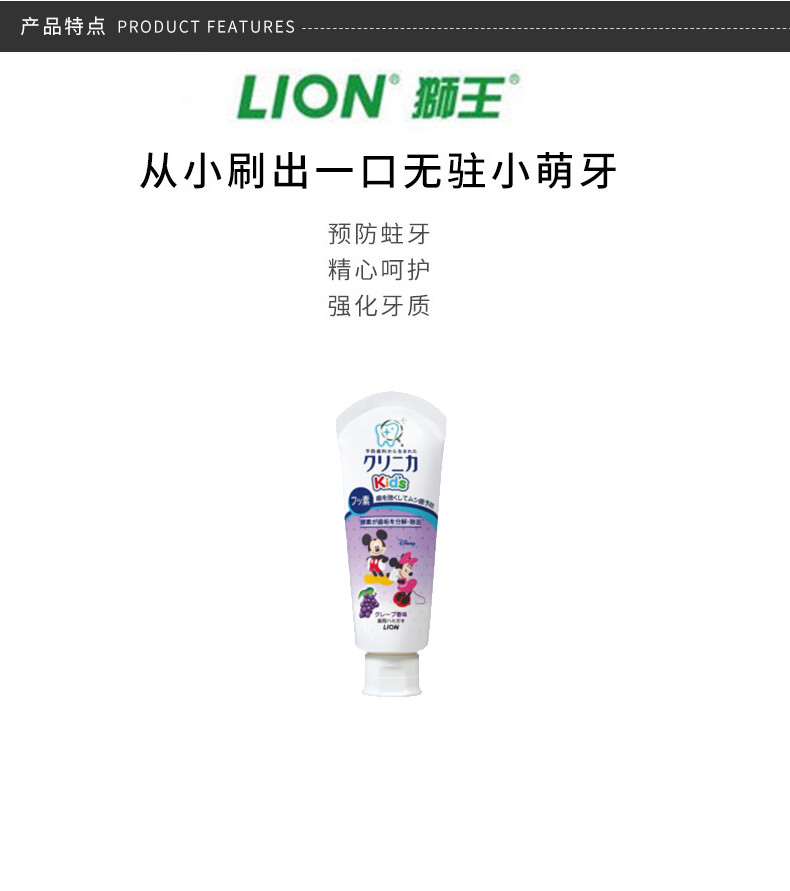 LION/狮王 米奇酵素儿童牙膏 天然木糖醇 葡萄味 60GJPY带授权招加盟代理