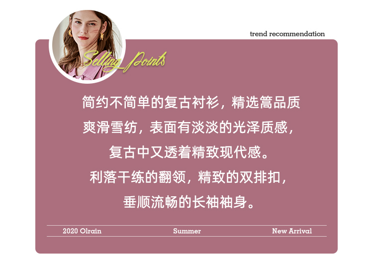 “精致”是欧芮儿olrain品牌文化的核心,欧芮儿认为,精致的女人,不但要外在动人,更要内在迷人,内外兼修,有魅力、有气质、有内涵,自信而不自傲,优雅而不矫揉,自有万种风情而不轻浮,更不故作矜持。
