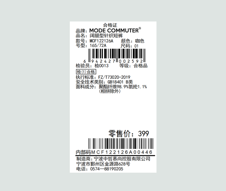 MODE COMMUTER | MC欧棉绒阔腿型针织短裤MCF122126A