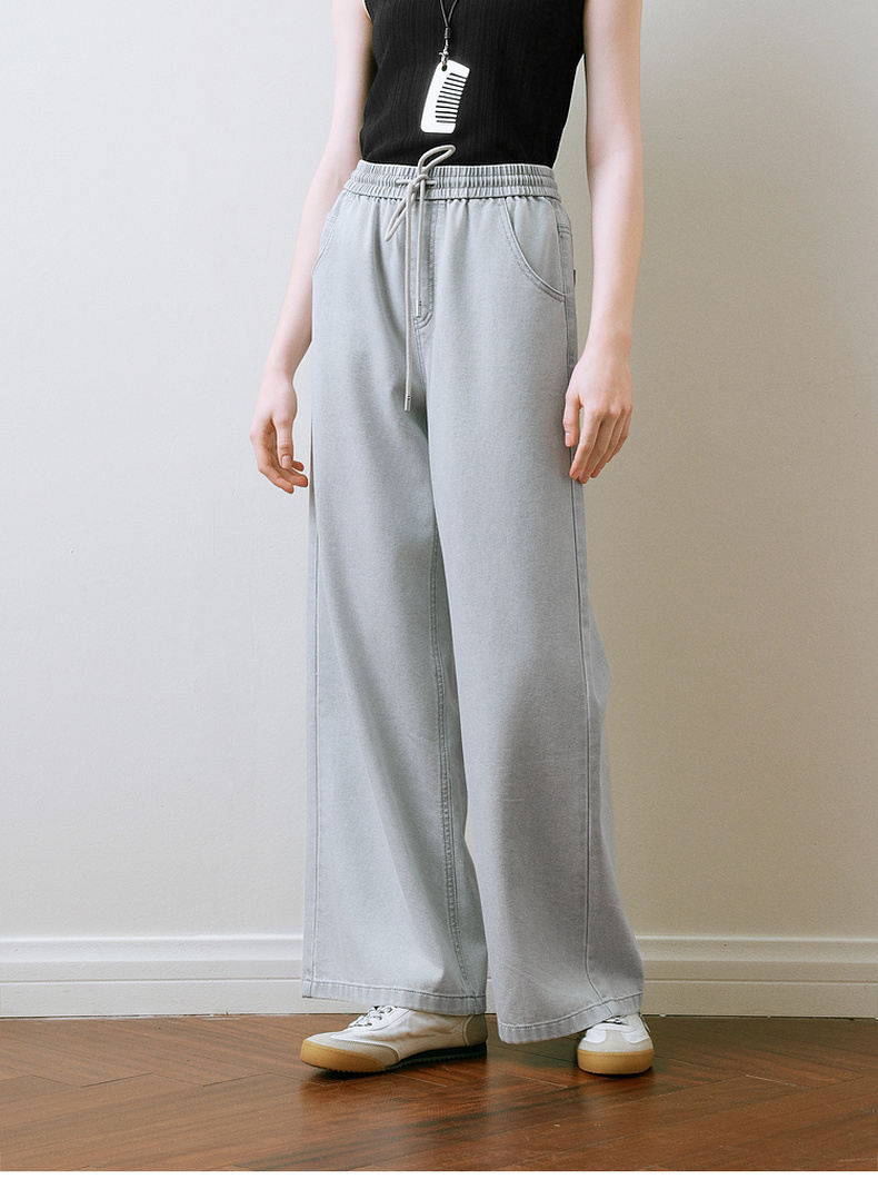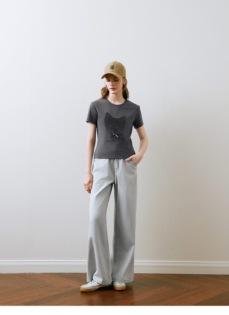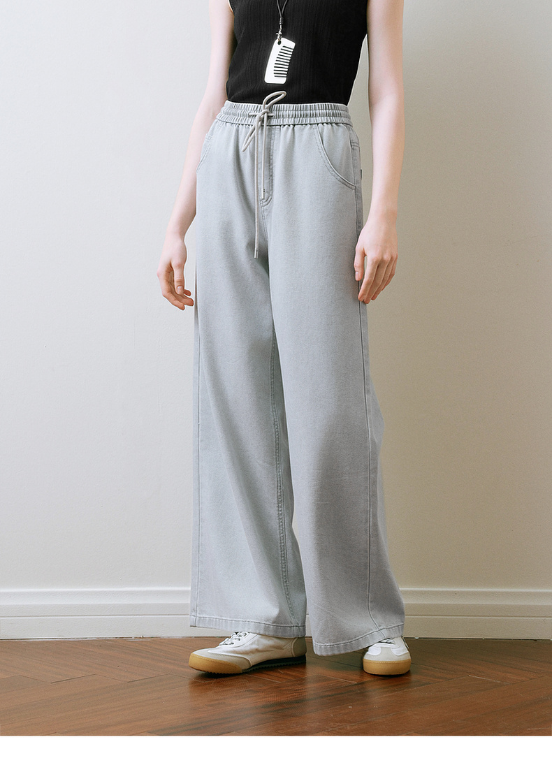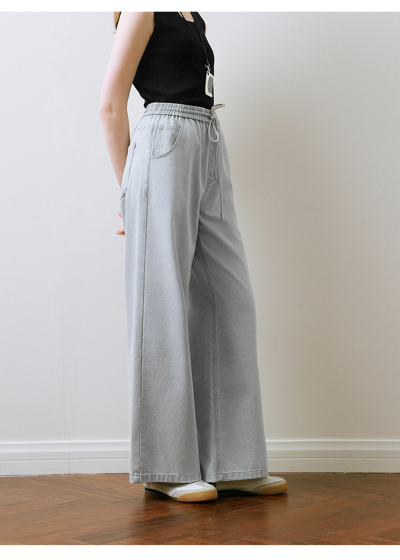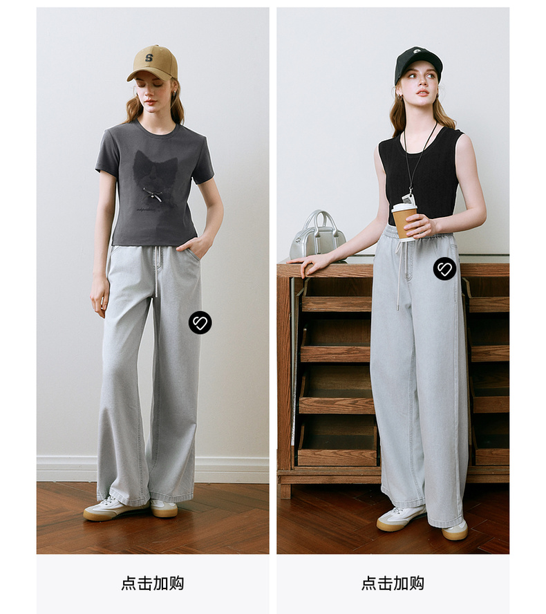 【商场同款】诗凡黎诗凡黎灰色阔腿牛仔裤2025夏新款休闲长裤3G4250701