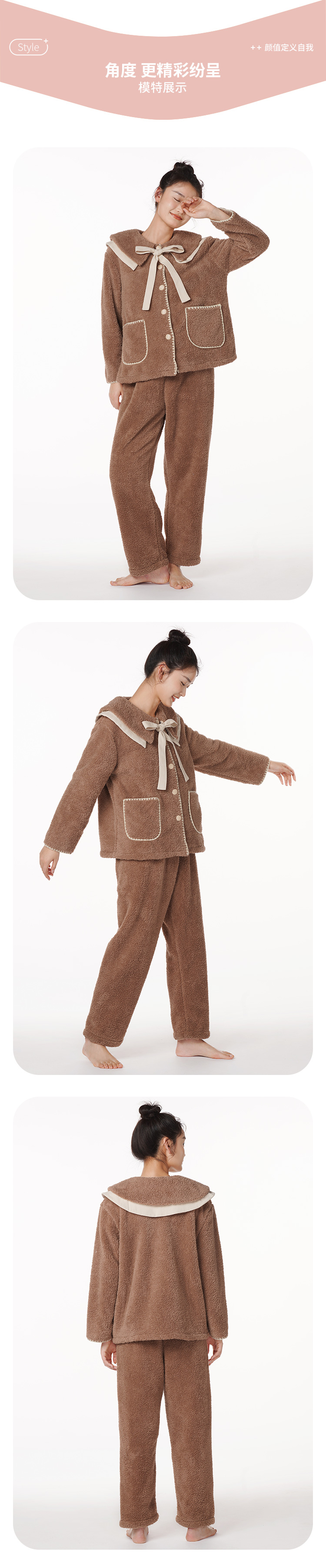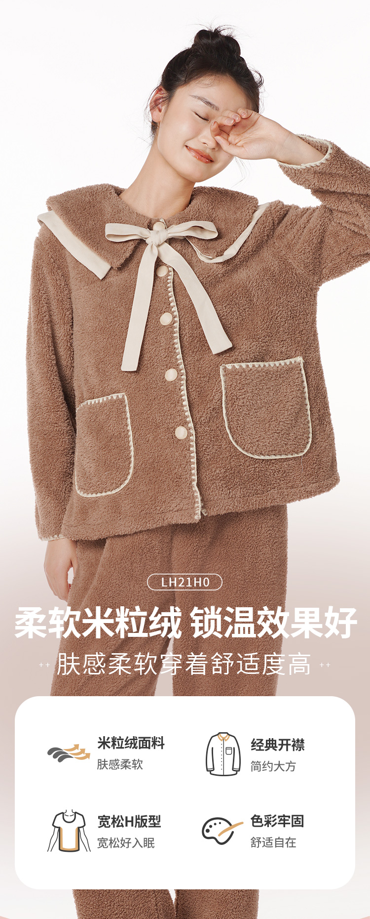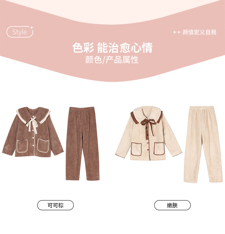 都市丽人生活家居女士米粒绒套装米粒绒厚家居服长袖睡衣LH21H0