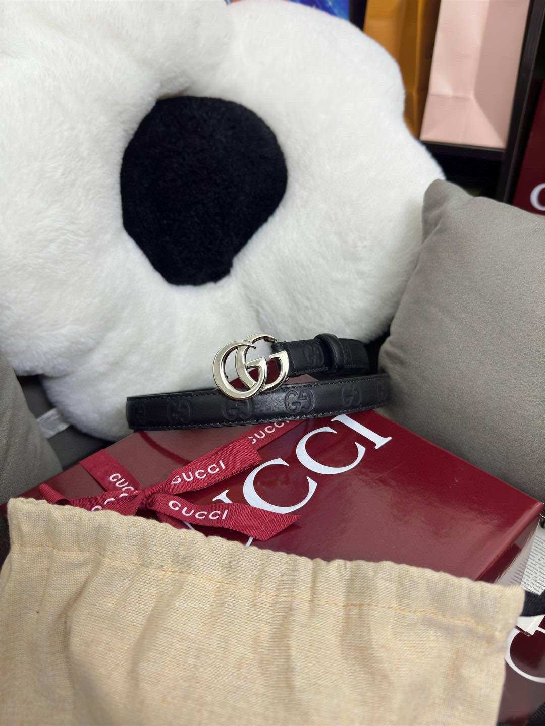 腰缠万贯~GUCCI古驰 经典2cm压花双G女士腰带 经典百搭的一款 可以配裙子,牛仔裤等等 好的配饰让穿搭效果翻倍!!