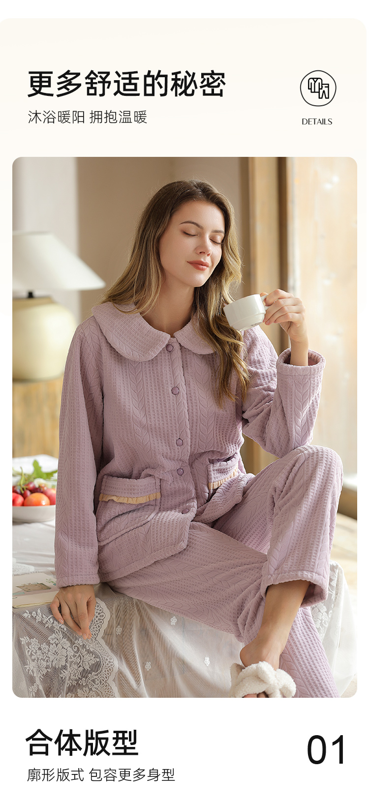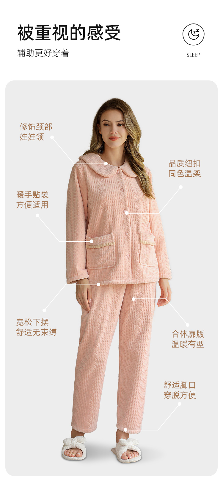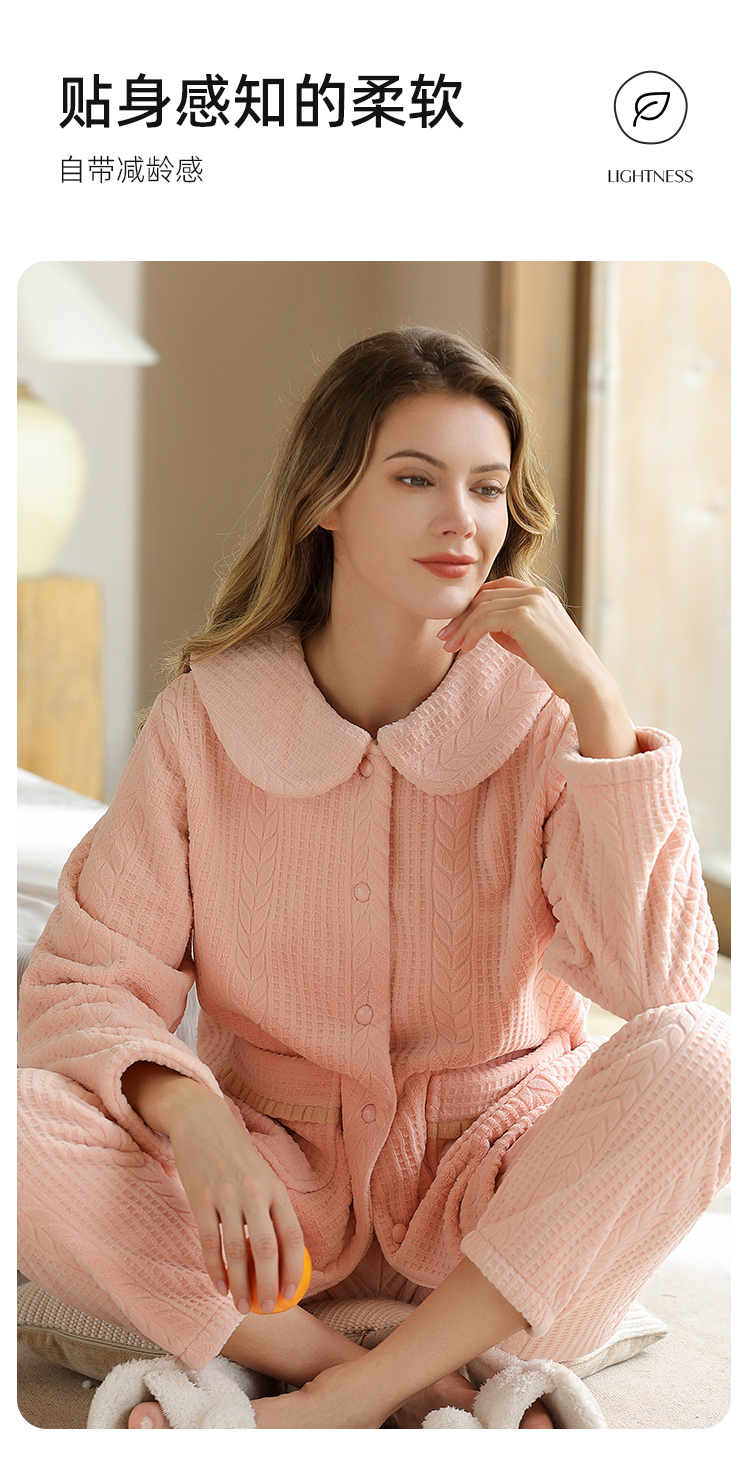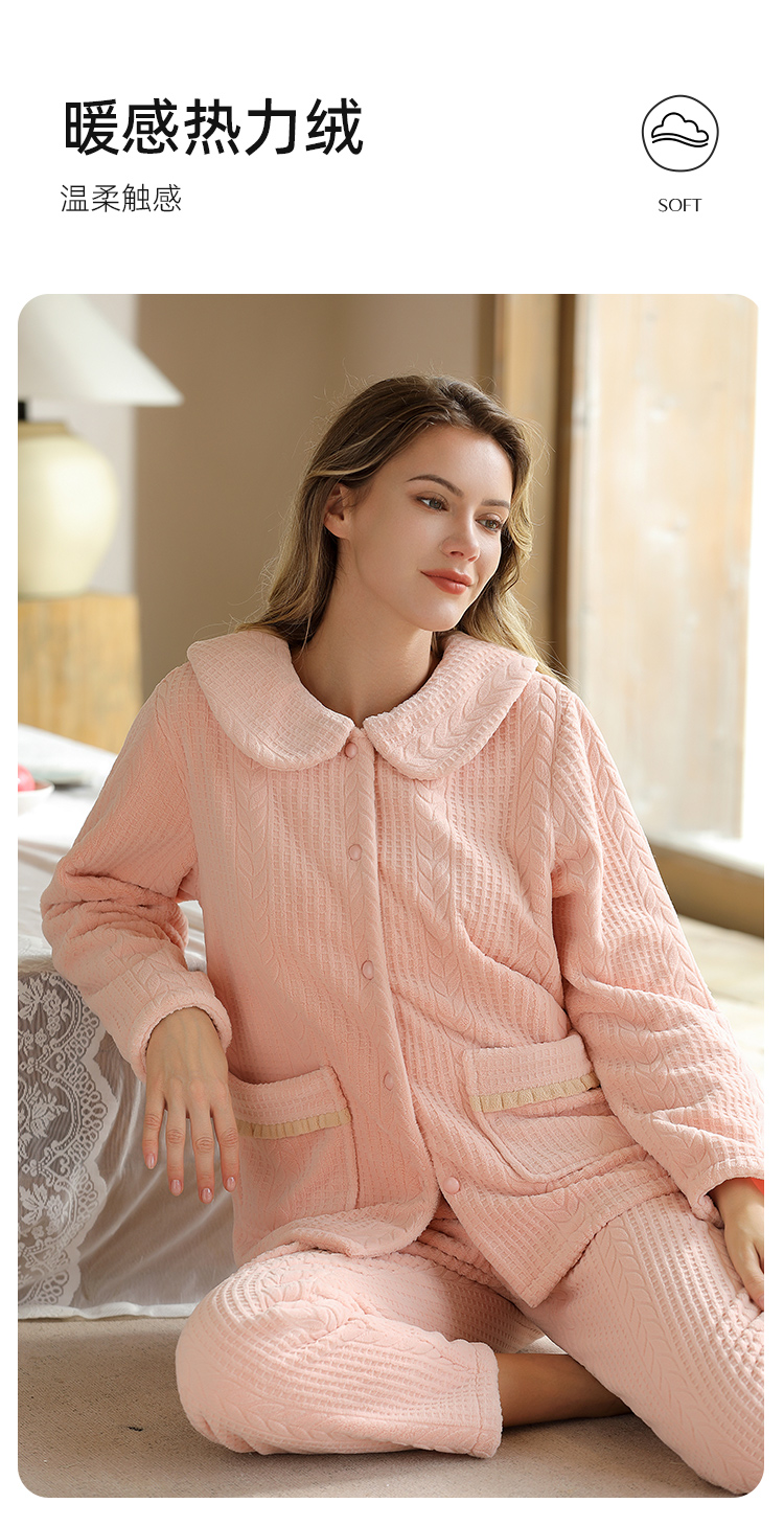 女士加绒睡衣秋冬款保暖加厚高档烂花绒家居服套装JJT90032