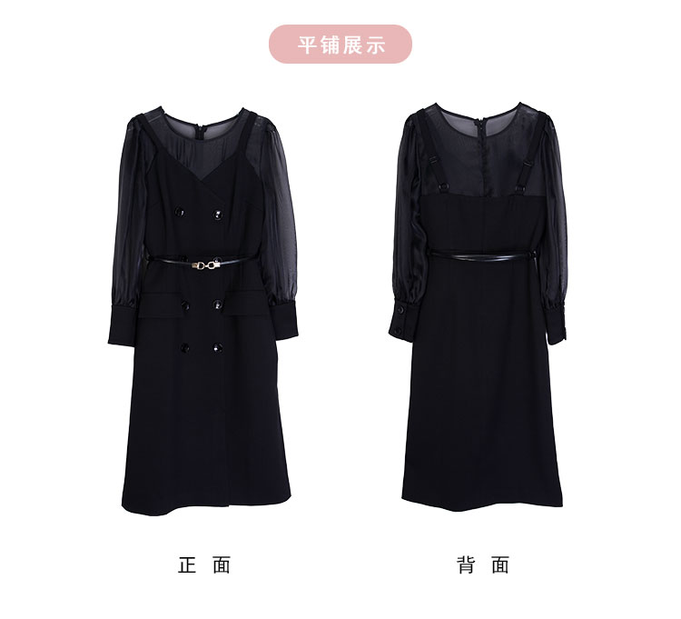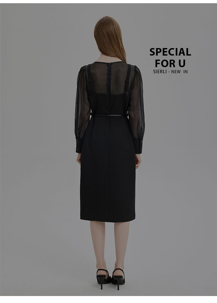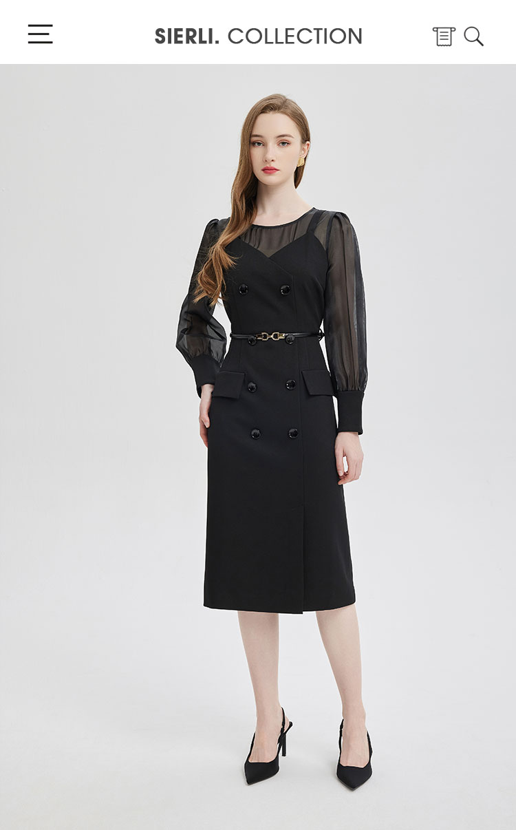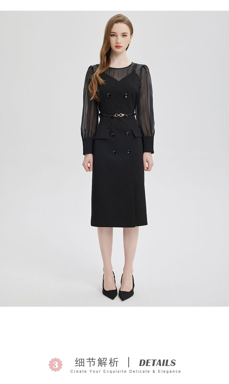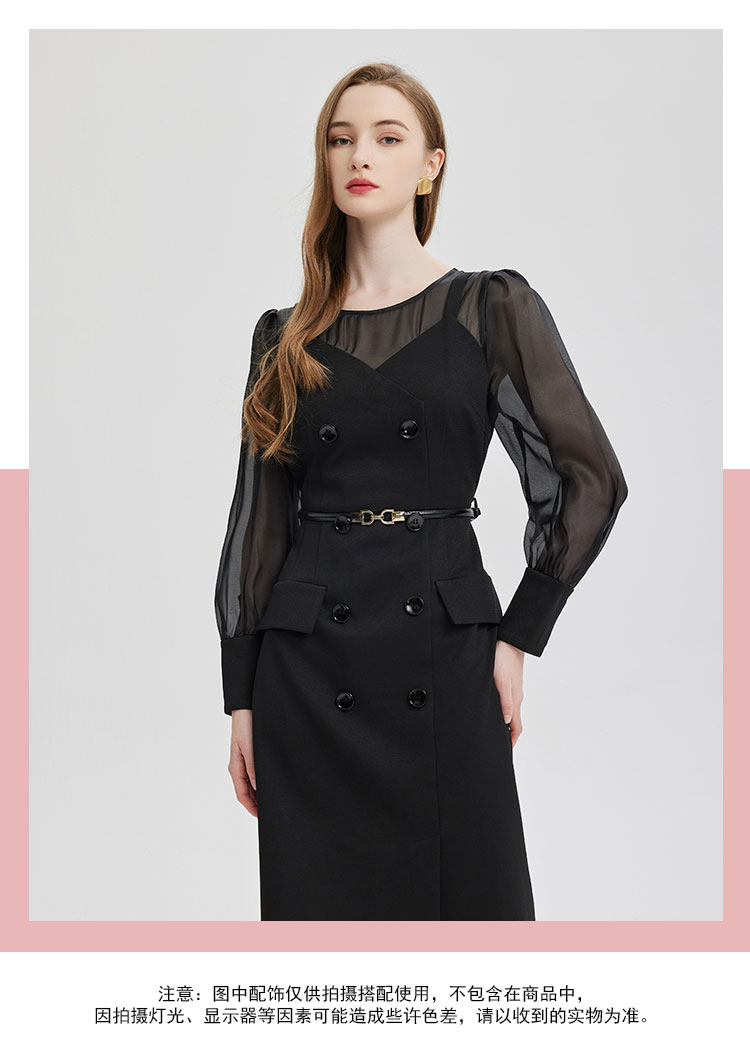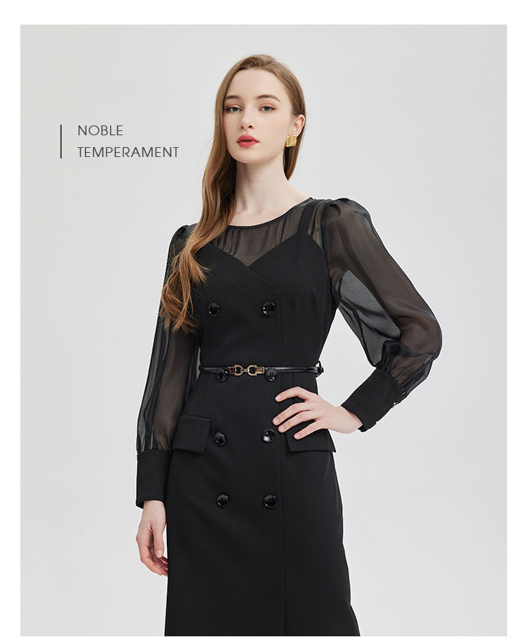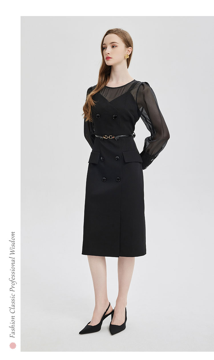 PE830斯尔丽2024春季新款假两件式性感通透内搭双排扣职业高级感连衣裙