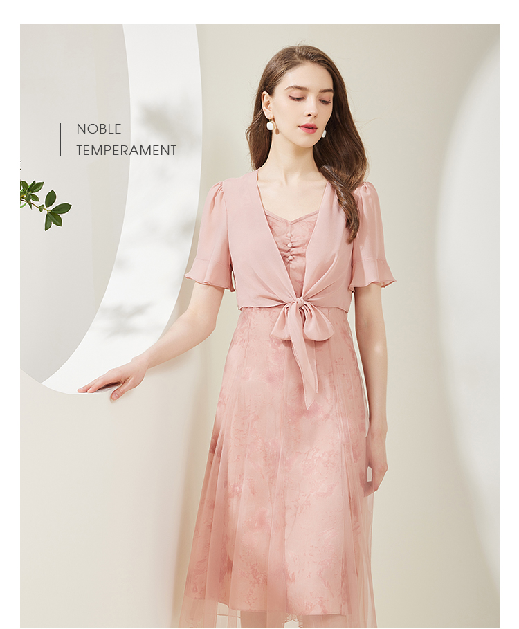 NF8T1斯尔丽瑟俪2023夏季披肩吊带两件套温柔A摆显高显瘦连衣裙