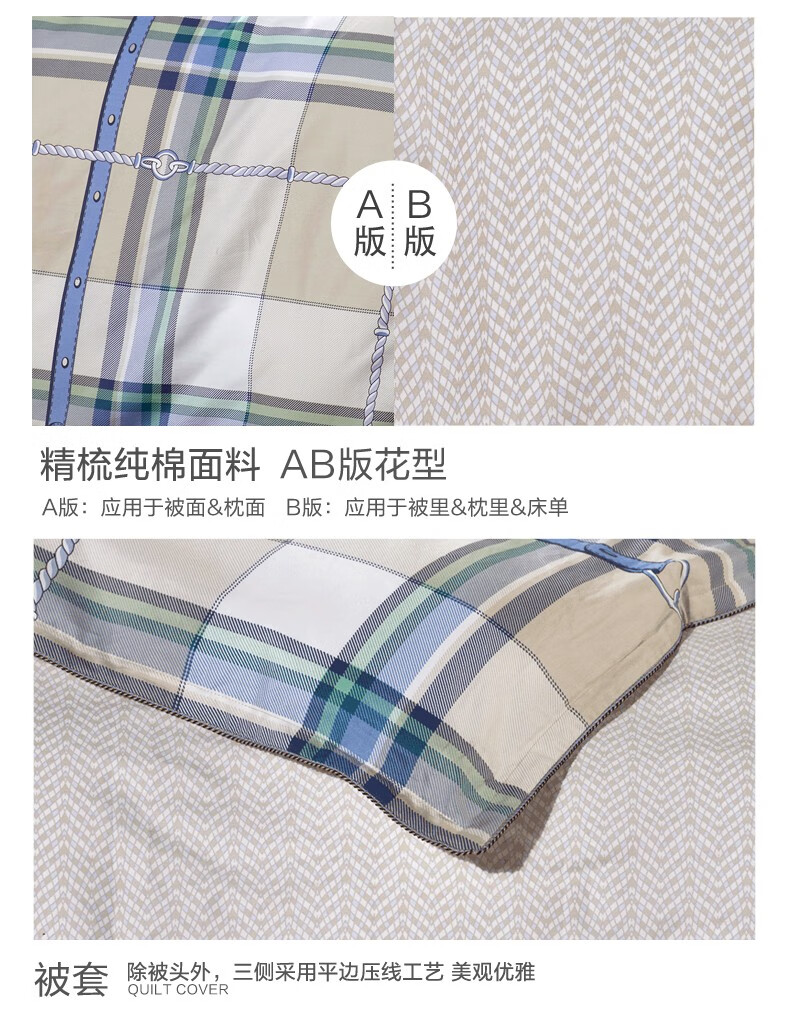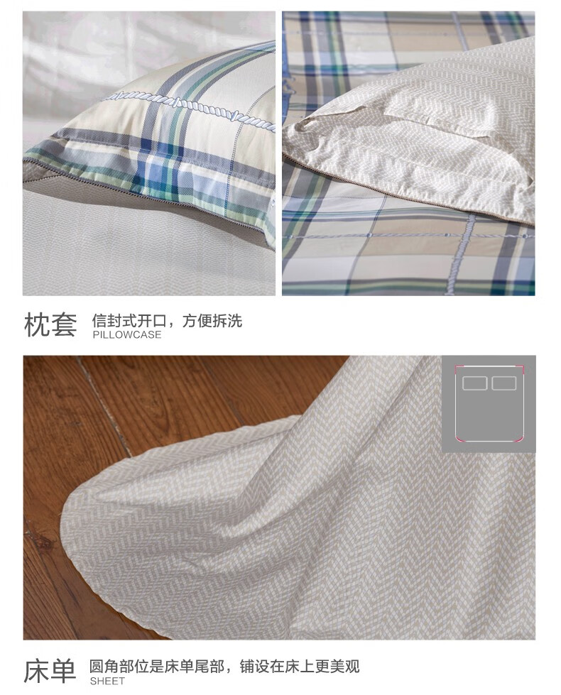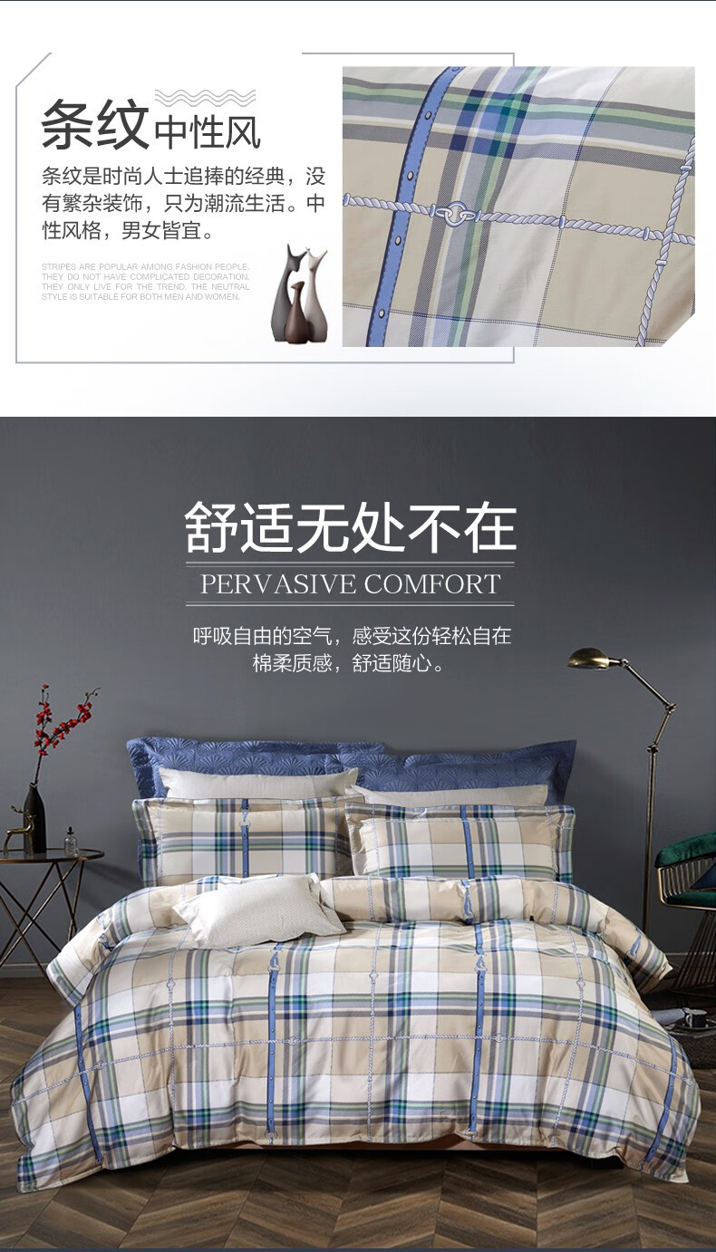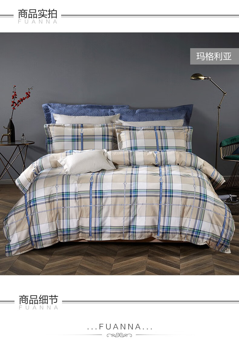 【纯棉】富安娜(FUANNA)床上被单被套纯棉套件中性格子床单四件套/玛格利亚 2.0*2.3 XHR