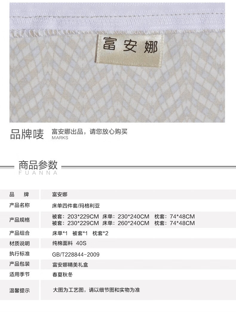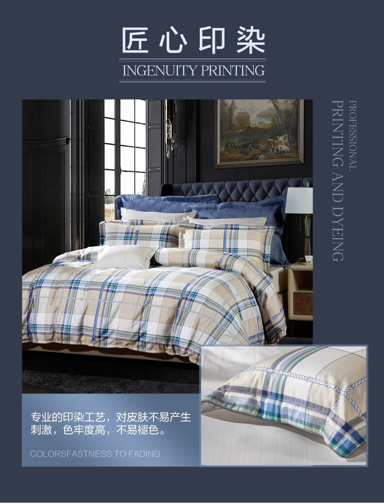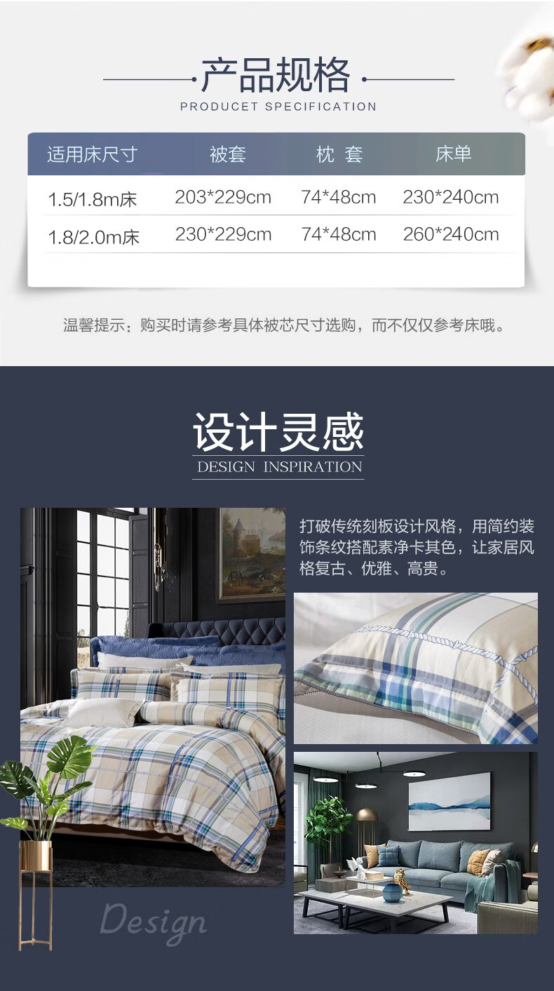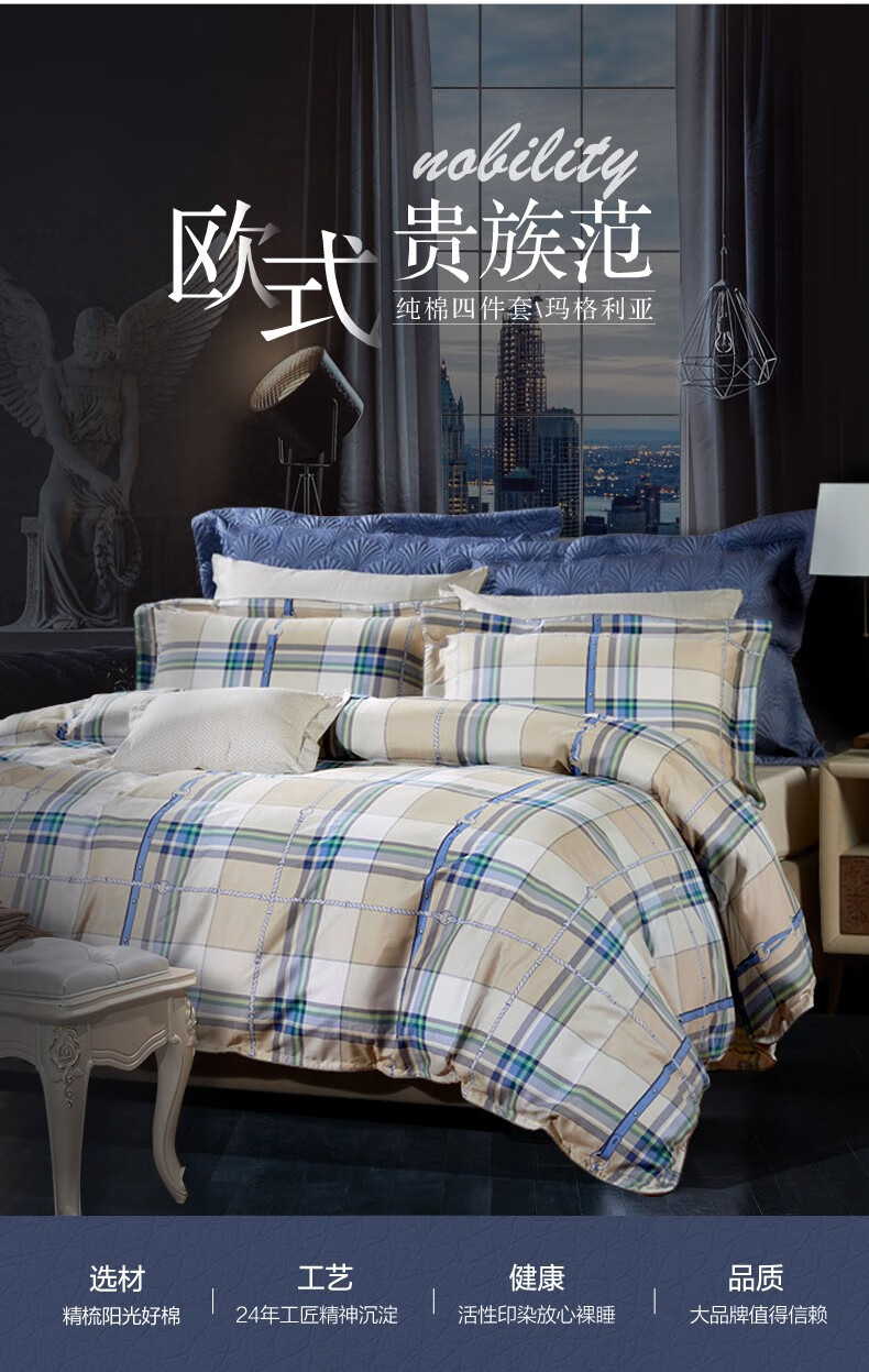 【纯棉】富安娜(FUANNA)床上被单被套纯棉套件中性格子床单四件套/玛格利亚 2.0*2.3 XHR