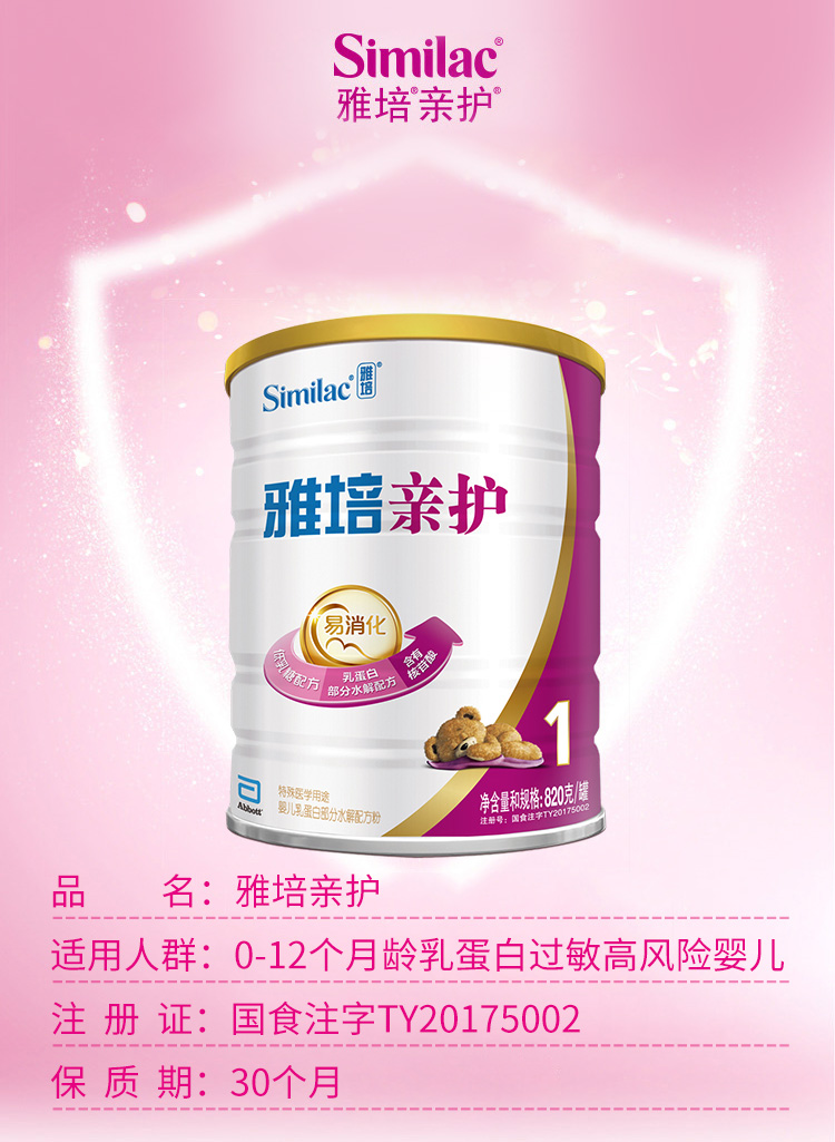 雅培亲护乳蛋白部分水解婴儿配方粉 1段820克(西班牙原装进口新老包装随发货)